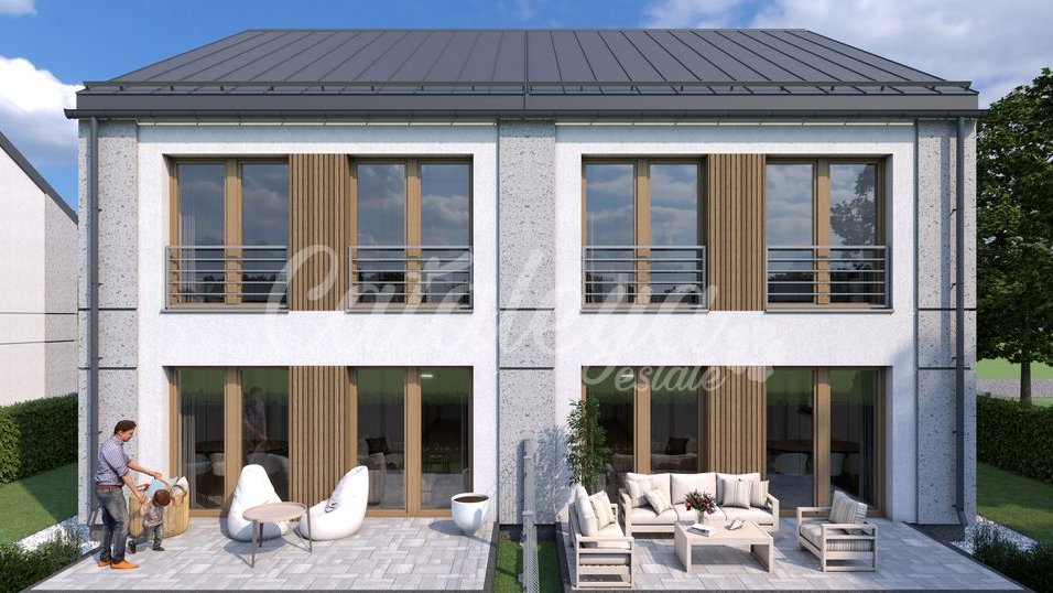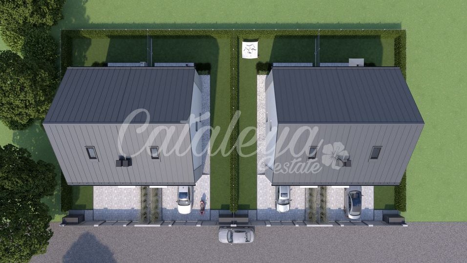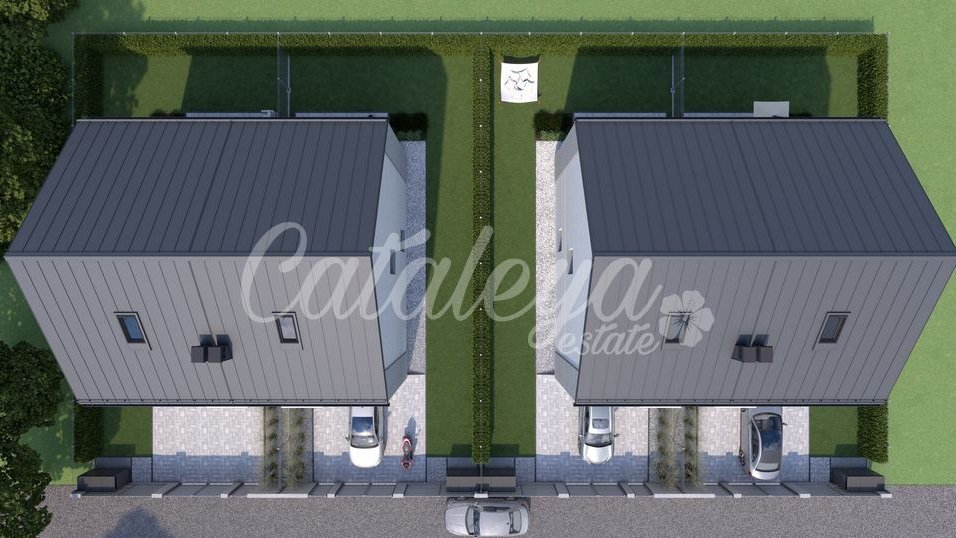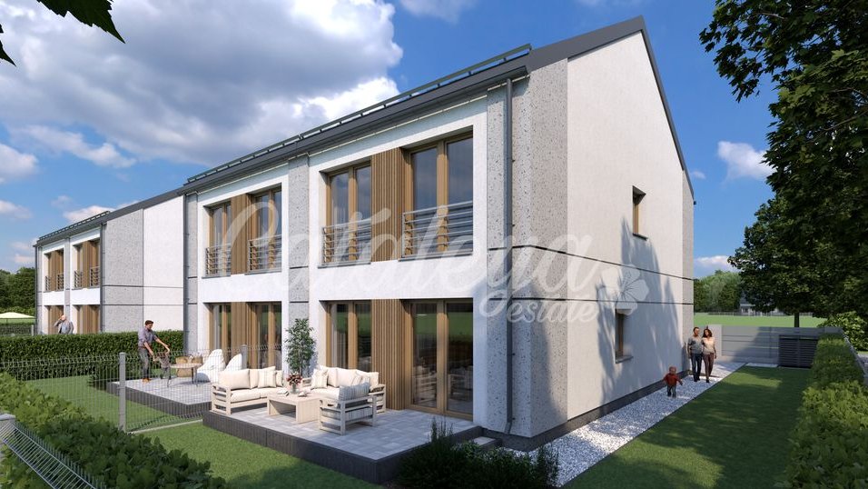 Domy mieszczą się na kameralnym osiedlu 2 budynków w zabudowie bliźniaczej.