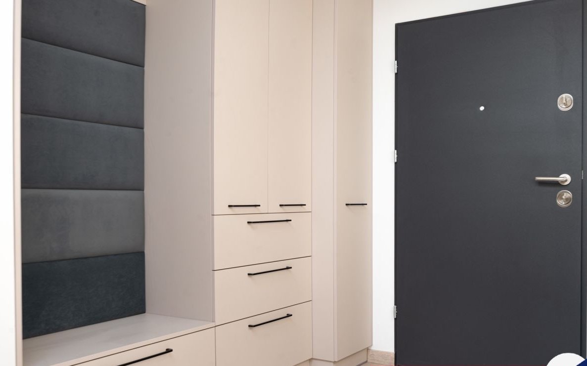 - zabudowana duża szafa garderobiana w holu z siedziskiem,