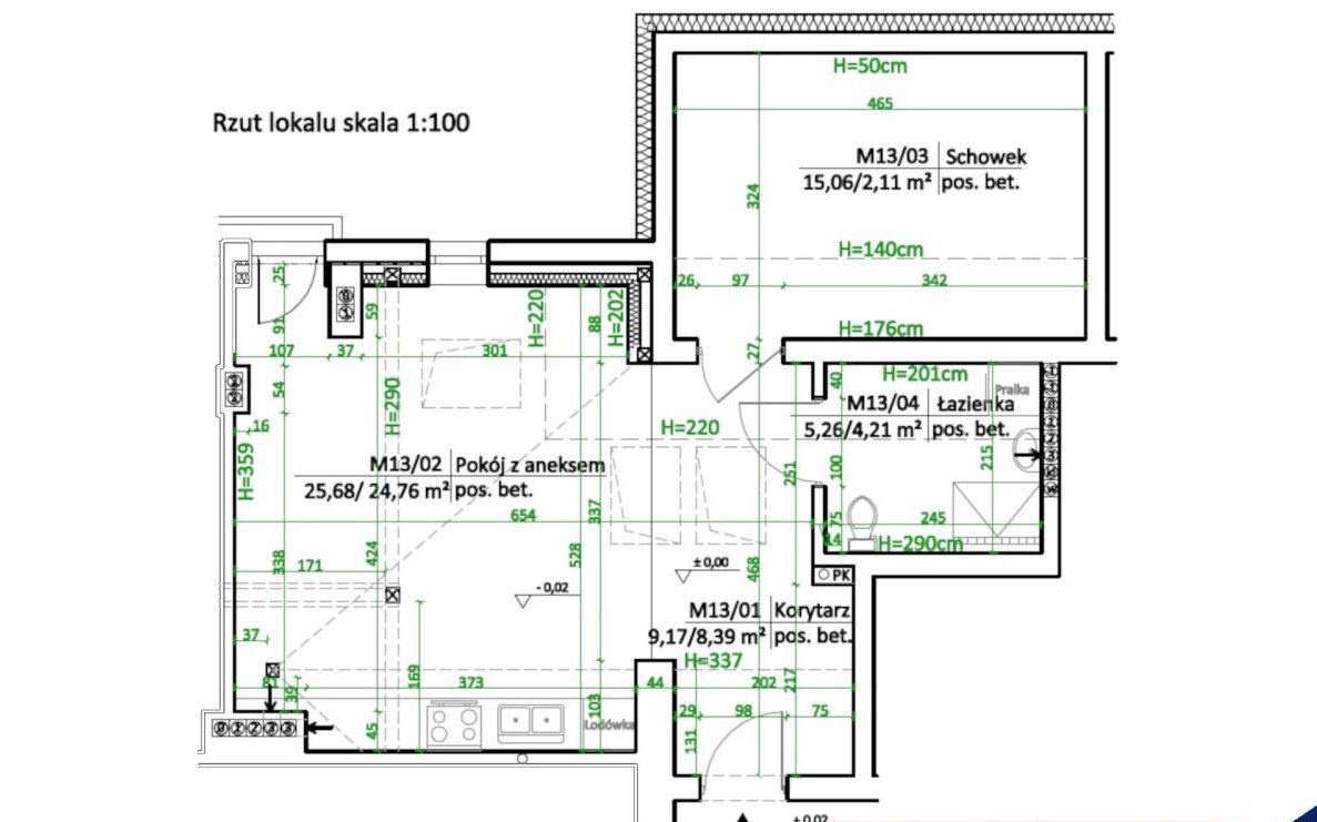 - wysokiego salonu z aneksem kuchennym o pow. 33,15 m2 (w tym otwarty na salon korytarz 8,39 m2),