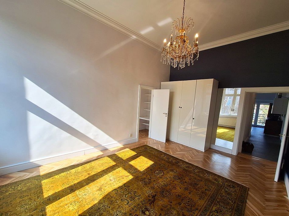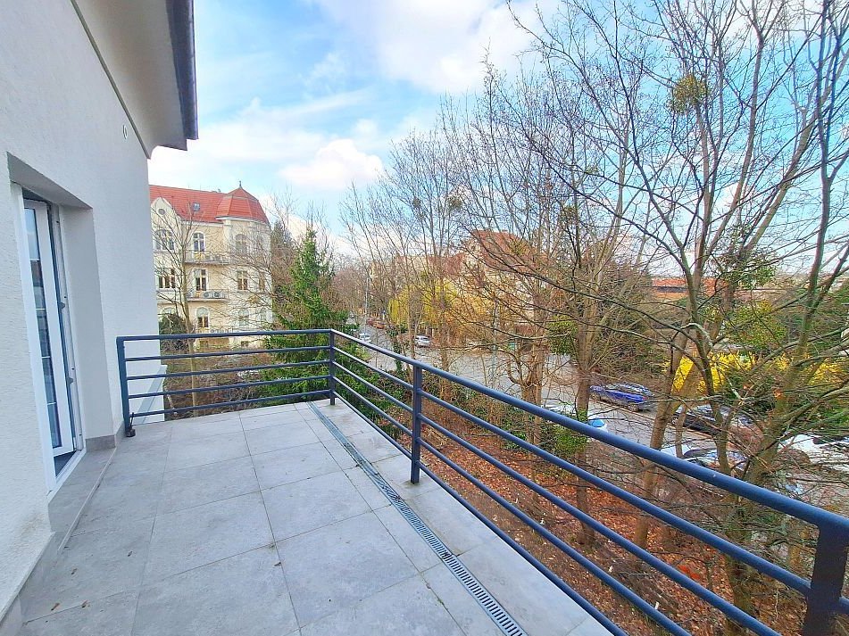 Przestronne, wysokie wnętrza, ponad 3,70m. Mieszkanie bardzo jasne i słoneczne, z wystawą okien od południa i zachodu. Taras z widokiem na ogród i zieleń, po remoncie, nowe kafle gresowe, idealne miejsce do relaksu i wypicia kawy.