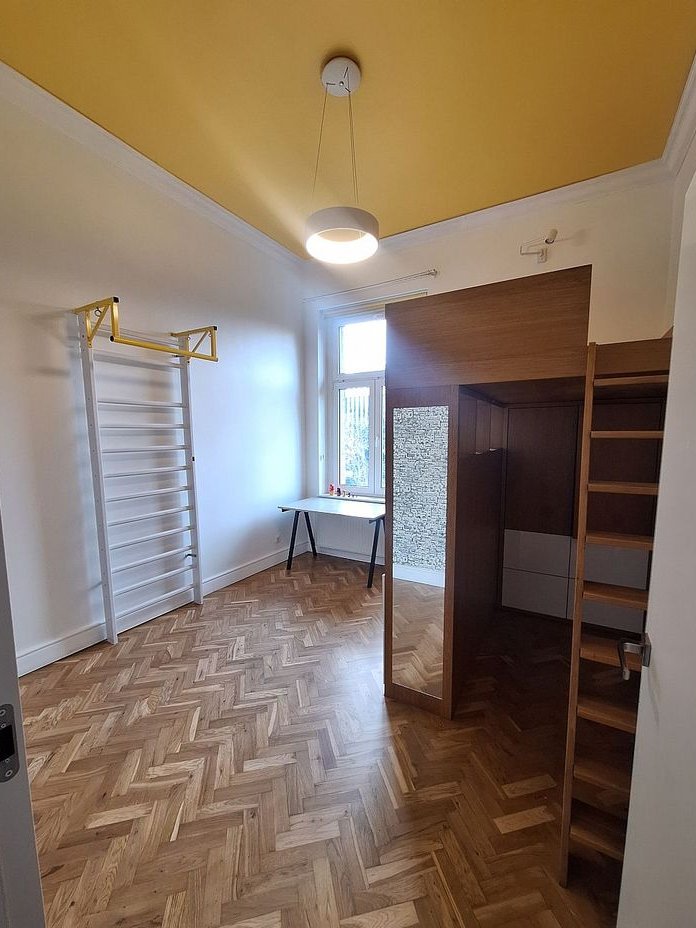 Możliwość dokupienia sąsiedniego mieszkania o powierzchni 96 (3 pokoje) co pozwoliłoby na zajęcie całego pierwszego piętra budynku.