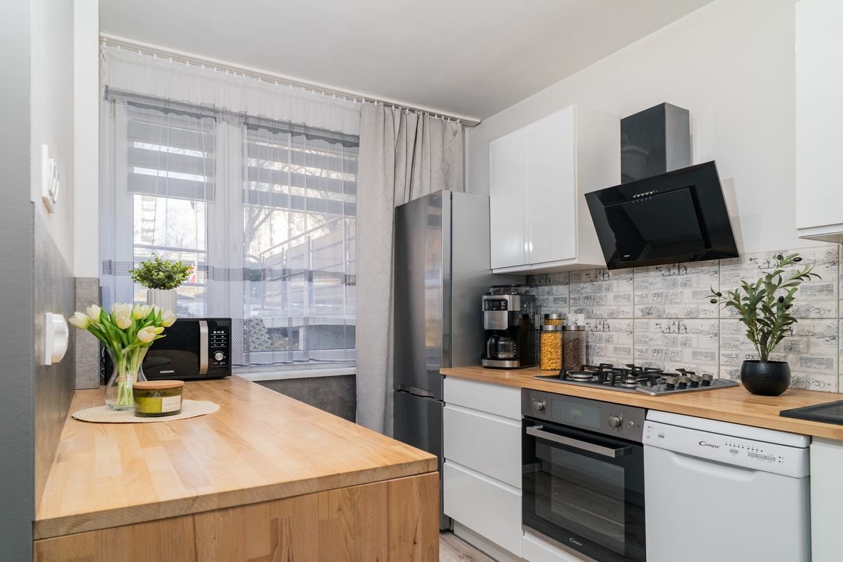 Komfortowe, w pełni wyposażone w sprzęty AGD (m.in. lodówka, piekarnik, zmywarka) mieszkanie, gotowe do wprowadzenia – bez dodatkowych nakładów finansowych.