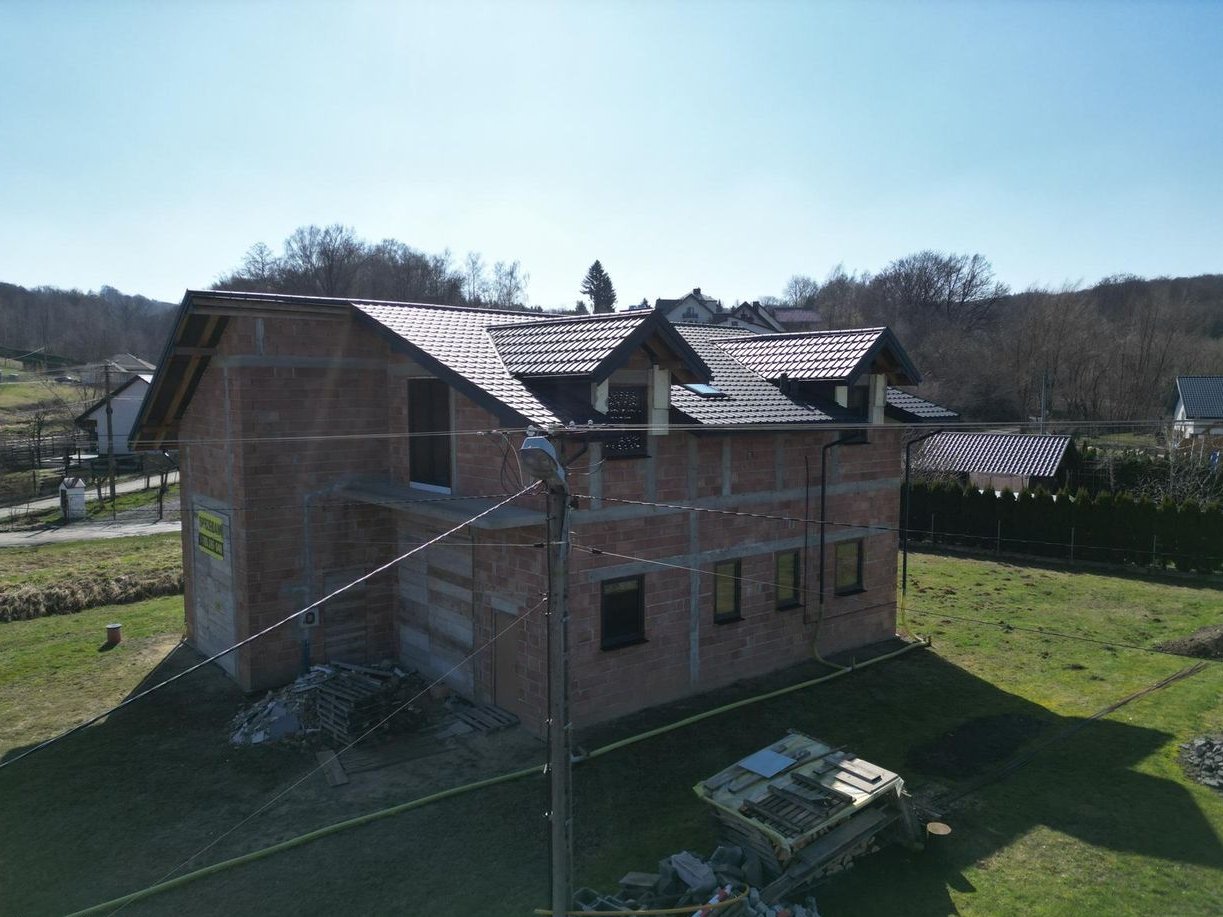 Budynek wykonano z pustaka ceramicznego, fundamenty zabezpieczono 10-centymetrową warstwą hydroizolacji. Zamontowano okna trzyszybowe, a dach pokryto blachodachówką. Nieruchomość usytuowana jest na działce o powierzchni 9,56 ara, wokół której wykonano drenaż.