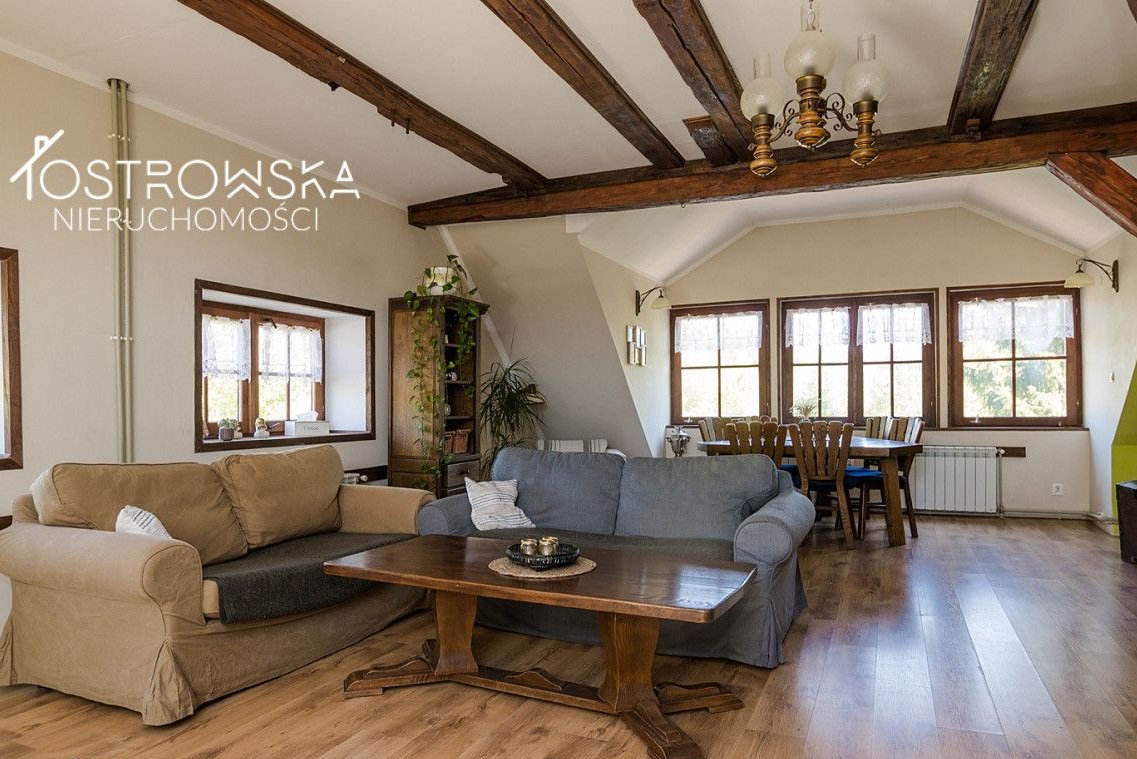 Budynek 4 kondygnacyjny o pow. całkowitej ok 1000 m2 posiada bezpośredni dostęp do drogi publicznej nr 58. Dach nad częścią mieszkalną z dachówki ceramicznej ( wymiana3 lata ), wymienione wszystkie okna, wnętrze do remontu i adaptacji w zależności od dalszego przeznaczenia . Fundament zbudowany z głazów, ściany z cegły palonej o grubości ok 35 cm.