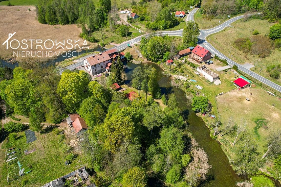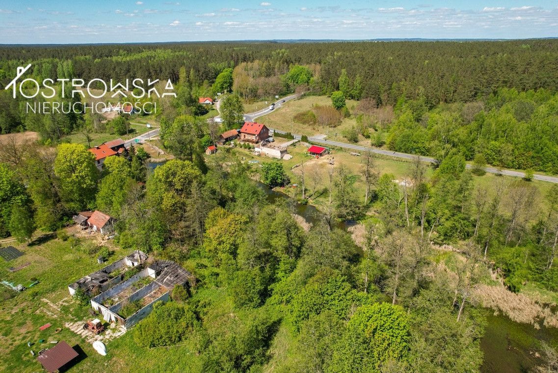 - 2 działki o łącznej powierzchni ok 3,6 ha z których jedna stanowi dawny zbiornik retencyjny, w dawnych czasach ( w okresie przed i w czasie II wojny ) zbiornik służył jako binduga rzeczna, czyli spławiano tam drewno. Na dzień dzisiejszy działka ta stanowi obszar zalany ( N). Nowy właściciel może próbować odtworzyć stary zbiornik retencyjny, albo zaadoptować ten zbiornik na staw hodowlany dla ryb. Druga działka, bezpośrednio przylegająca do zbiornika stanowi las olszynowy z częścią łąki (RV,PsV,LsV) .W chwili odnowienia zbiornika działka ta zapewni bezpośredni dostęp do wody od drogi krajowej nr 58.