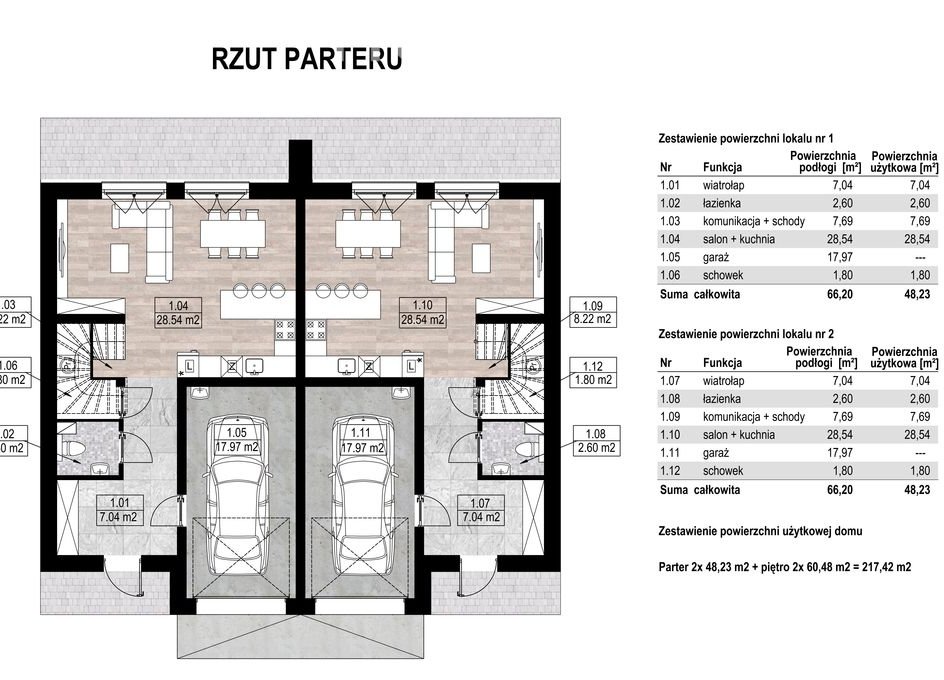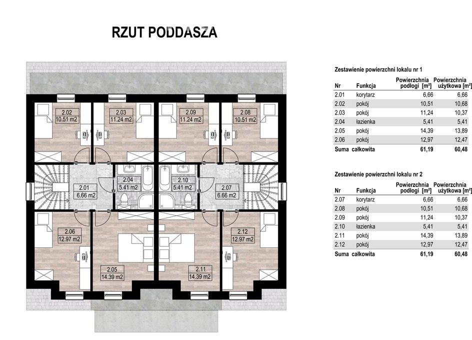 Nieruchomość deweloperska składają się z parteru i piętra.