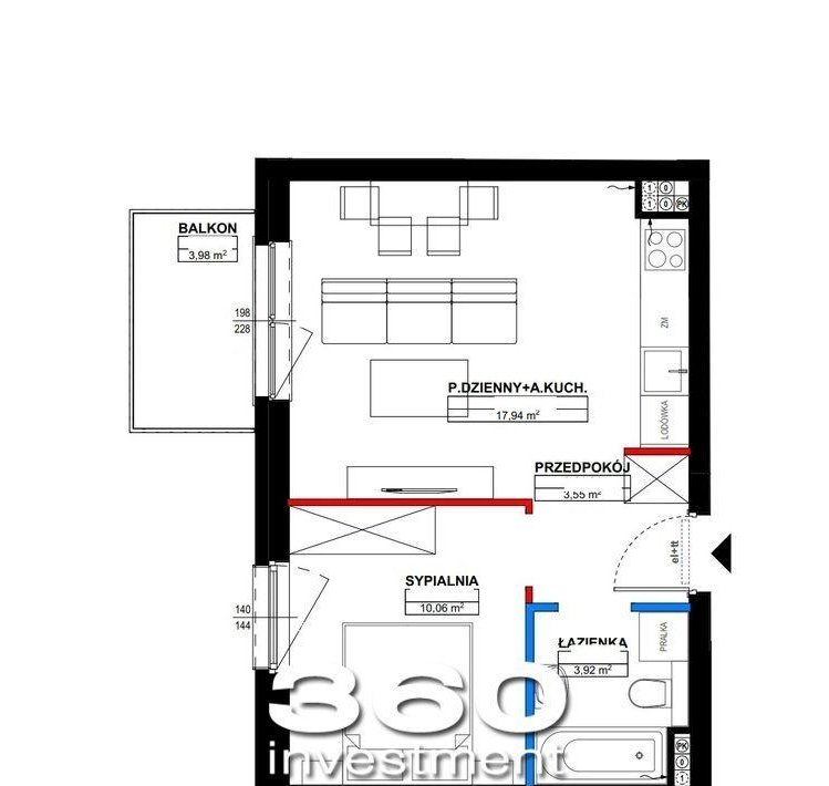 Balkon: 3,98 m² – idealne miejsce na poranną kawę.