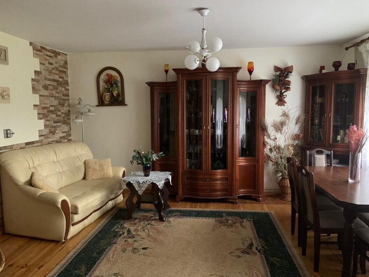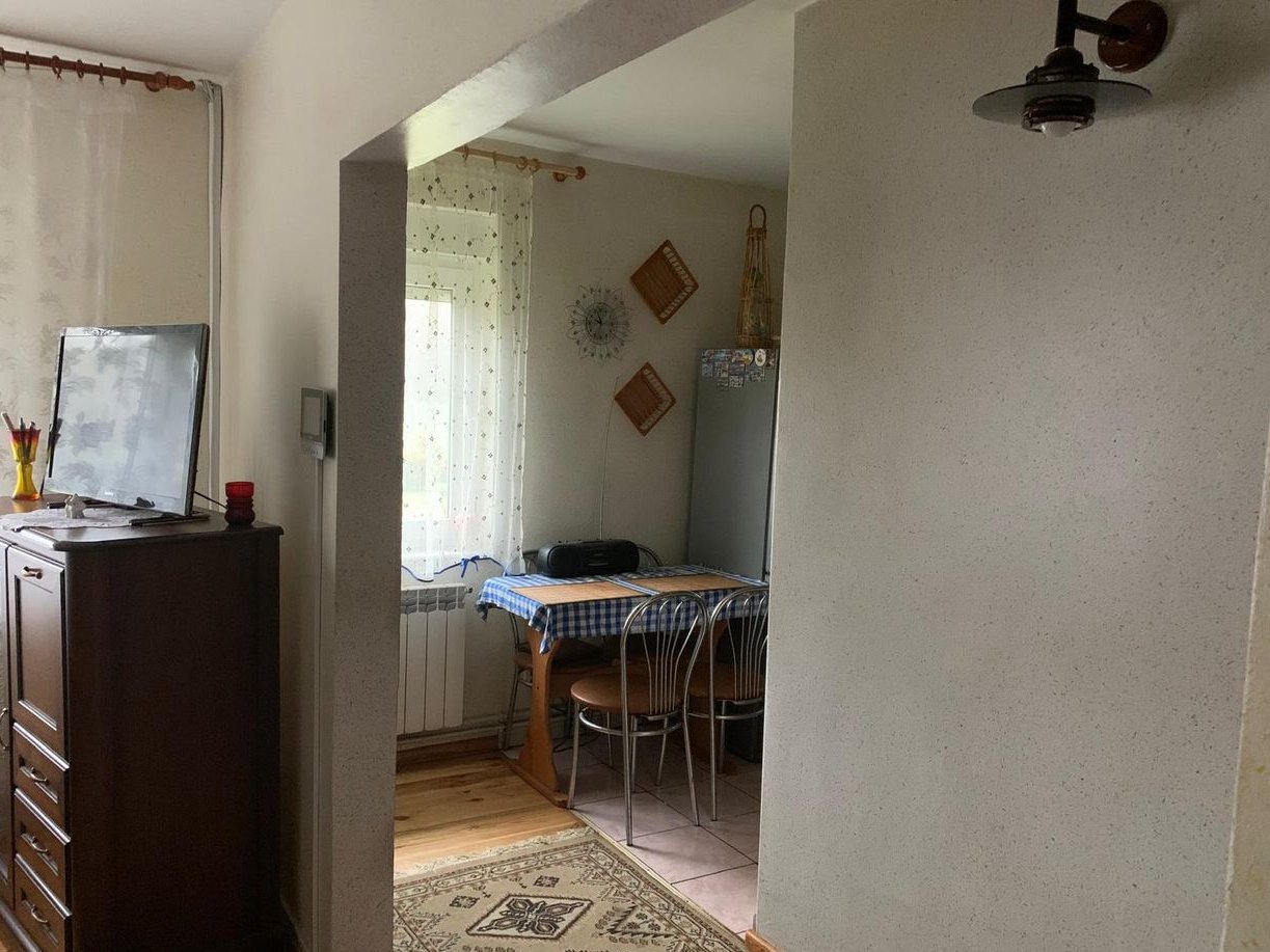 Dom całoroczny, o pow. 72 m kw. w stanie do natychmiastowego zamieszkania. Dom umeblowany, z wszelkimi niezbędnymi do zamieszkania urządzeniami i wyposażeniem. Przeszklony, duży taras (o pow. niewliczonej do pow. domu), hol, spiżarnia, kuchnia, pokój dzienny, 2 sypialnie, łazienka, oddzielna toaleta. Strych nieużytkowany, ok. 80 m kw. powierzchni, świetnie spisuje się jako suszarnia. Konstrukcja dachu stalowo-drewniana, pokrycie: blachodachówka z posypką. Ocieplenie dachu - wełna mineralna. Ocieplenie ścian - styropian 10 cm. W oknach rolety zewnętrzne.