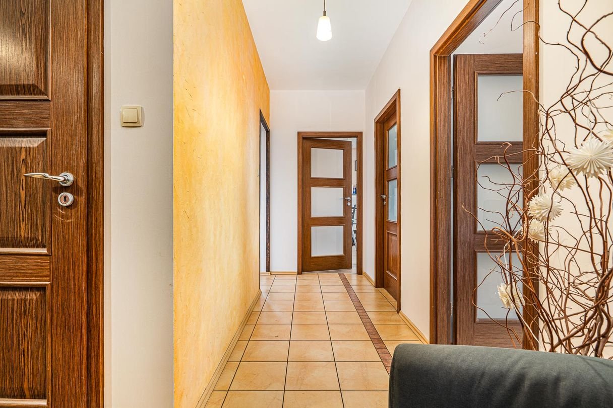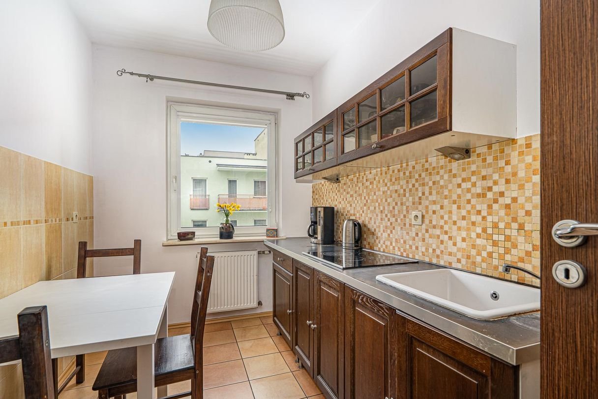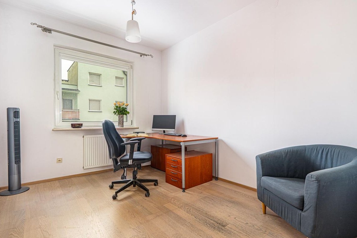 Trzy ustawne, jasne i duże pokoje oferują swobodę aranżacji. Mogą pełnić funkcję komfortowej strefy dziennej i sypialni, trzech niezależnych pokoi na wynajem lub reprezentacyjnych gabinetów biurowych. Spory, narożny balkon i duże przeszklenia zapewniają bardzo dobre doświetlenie wnętrz, co przekłada się na codzienny komfort pracy i życia. Oddzielna, widna kuchnia to ogromny atut — zapewnia wygodę i pełną funkcjonalność, a jednocześnie pozwala zachować prywatność części dziennej. To rozwiązanie szczególnie poszukiwane zarówno przez najemców, jak i osoby kupujące mieszkanie dla siebie. Dodatkowym udogodnieniem jest osobna łazienka oraz niezależne WC - praktyczne rozwiązanie, które podnosi komfort użytkowania lokalu, zwłaszcza przy większej liczbie domowników lub w przypadku wykorzystania biurowego.