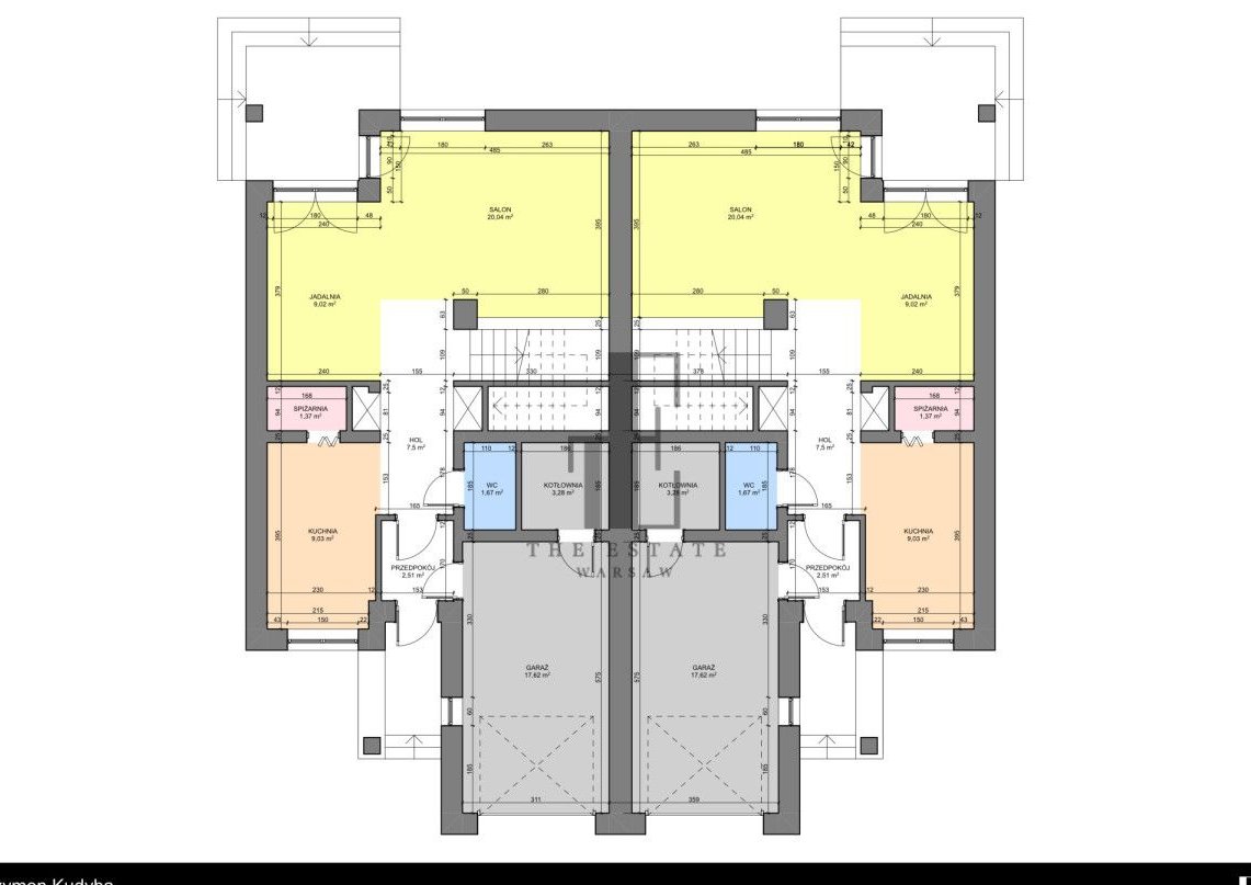Parter - obejmuje przestronny salon z miejscem na jadalnię i przygotowaną zabudowę kominka, oddzielną kuchnię, toaletę, hall z miejscem na szafę wnękową, kotłownię z pralnią oraz garaż z bramą sterowaną pilotem i Bluetooth.