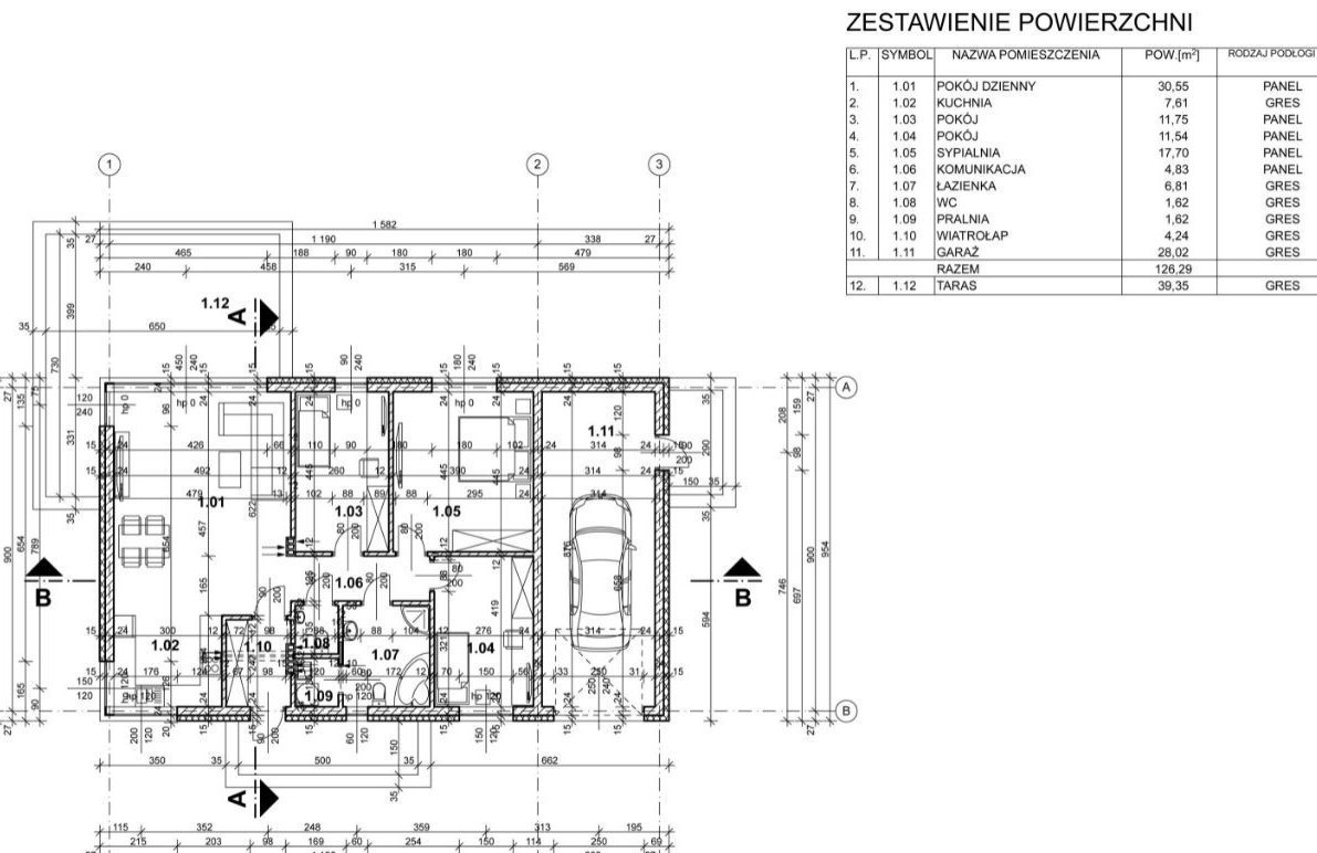 Powierzchnia użytkowa domu 126m2.