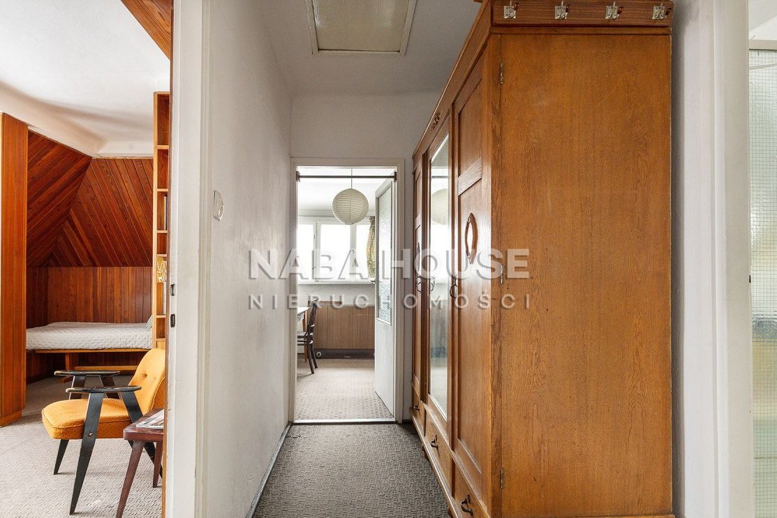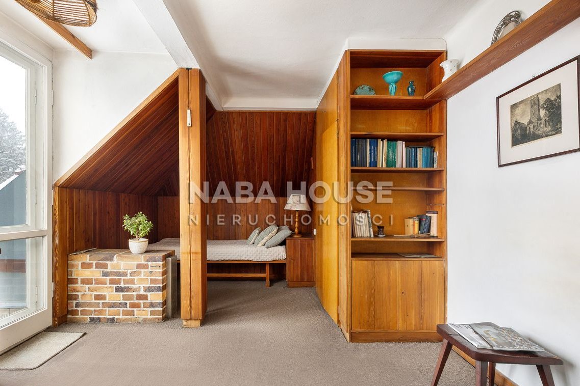 Solidne schody prowadzą na wyższe piętro (poddasze). To 41 m2 powierzchni użytkowej (powierzchnia podłogi to około 70 m2), na które składają się: duży, jasny pokój (17 m2) z balkonem (około 6 m2), drugi pokój (12 m2), niewielka kuchnia (6 m2), toaleta (2 m2) oraz korytarz i pomieszczenie strychowe.