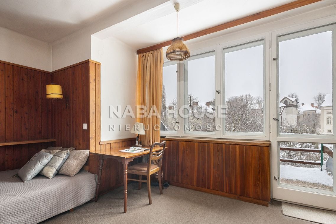 Piętro, najważniejsza cześć tej wyjątkowej nieruchomości to mieszkanie o powierzchni 90 m2, na które składają się: salon o powierzchni 21,5 m2 z dużym przeszkleniem i wyjściem na południowy 12-metrowy taras, połączony dwuskrzydłowymi drzwiami z drugim pokojem dziennym (24 m2) oraz pokój (21,5 m2) obecnie pełniący funkcję sypialni. Uzupełnieniem tej kondygnacji jest odrębna kuchnia (8 m2), łazienka z prysznicem (6,5 m2) oraz reprezentacyjny 9-metrowy hol.