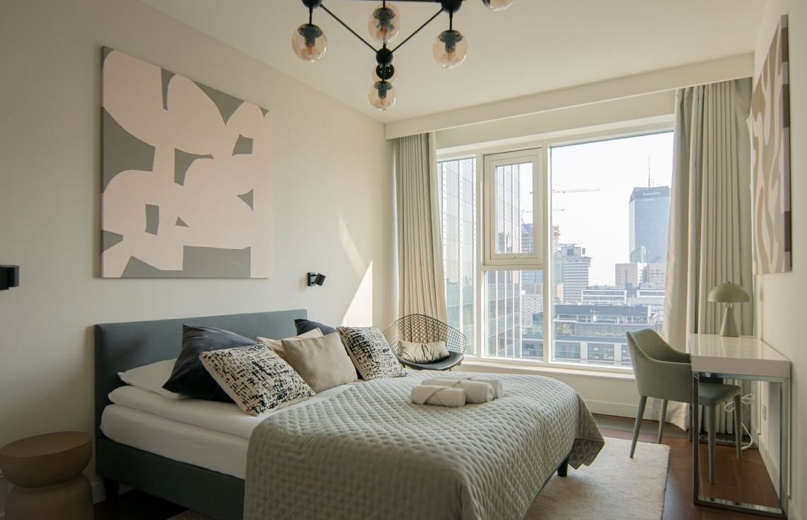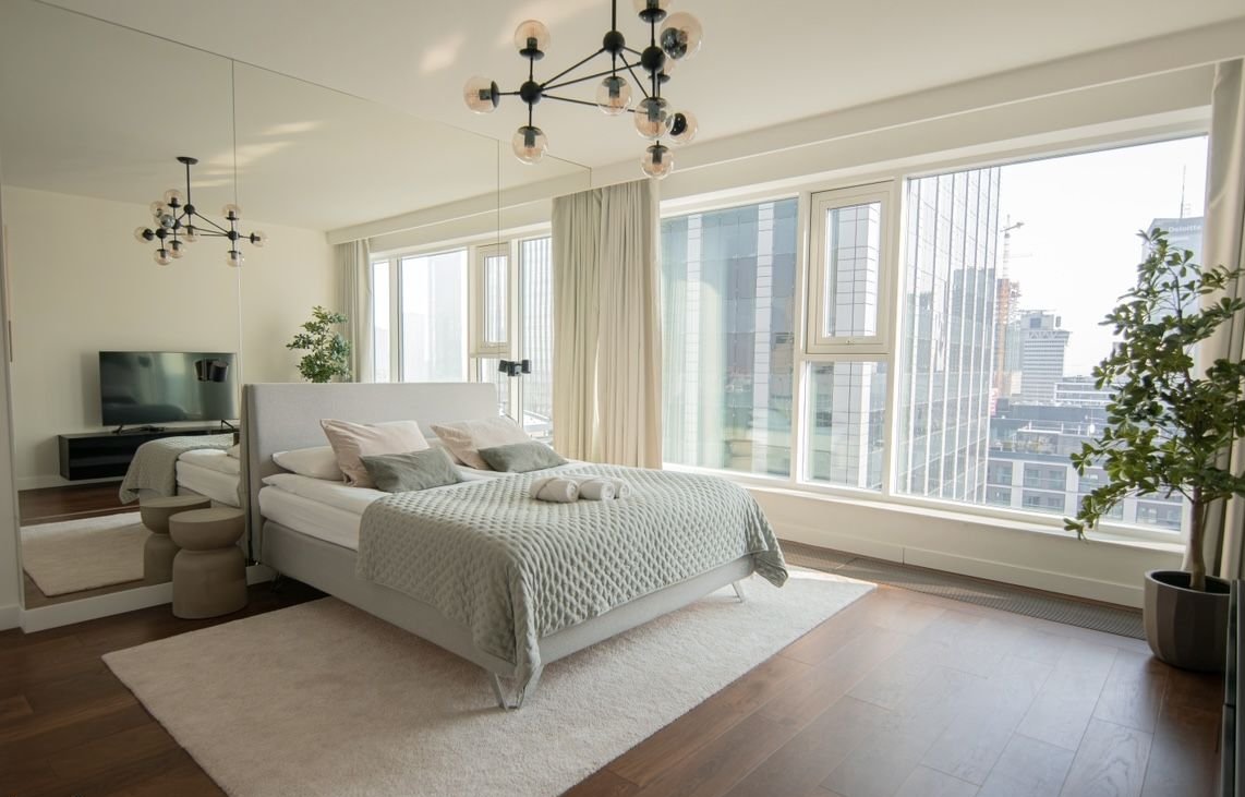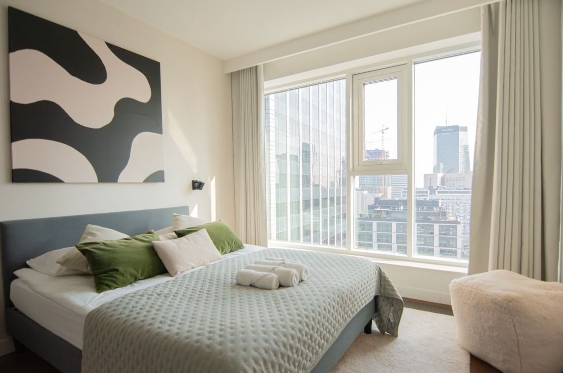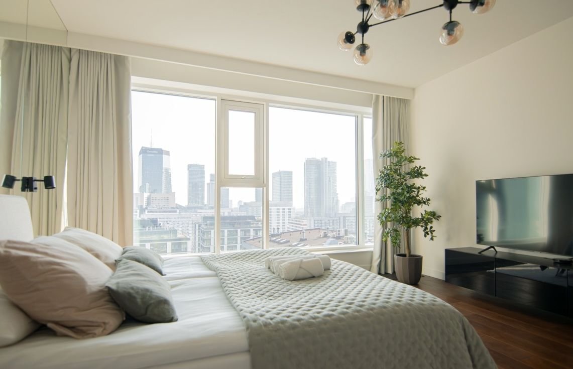Czteropokojowy apartament w budynku Unique Tower z wyjątkowym widokiem na panoramę Warszawy, w tym na warszawskie City.