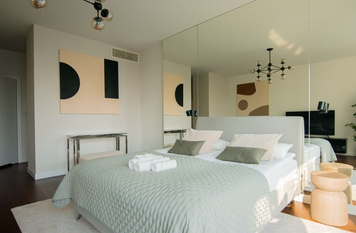 Warto podkreślić, że w apartamencie są 3 łazienki, we wszystkich pokojach zastosowano najwyższej jakości zasłony z funkcją "blackout" nie przepuszczających światła.