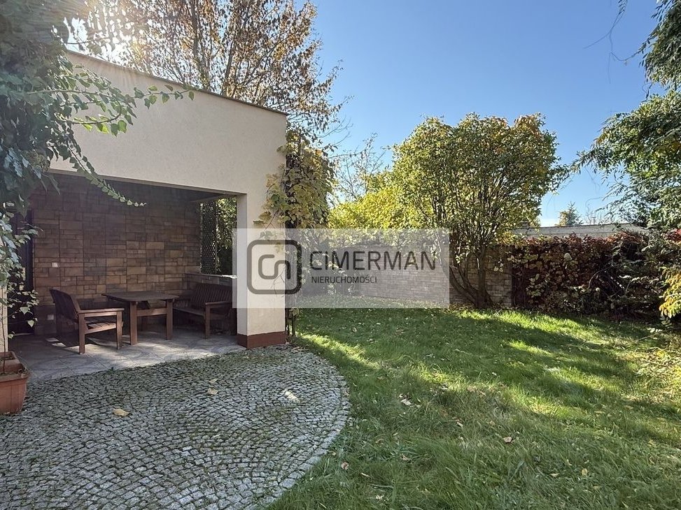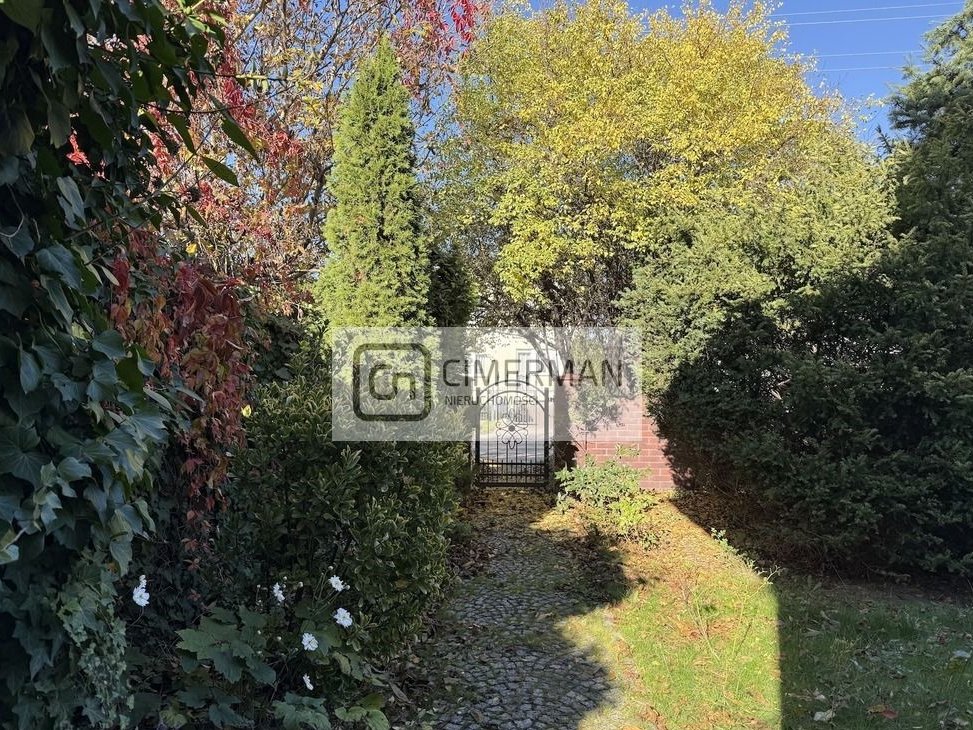 Powierzchnia działki wynosi 580 m2, część ogrodowa położona jest od strony południowej. Część posesji od frontu budynku została utwardzona i wyłożona ażurową kostką, miejsce idealne do zaparkowania kilku samochodów.