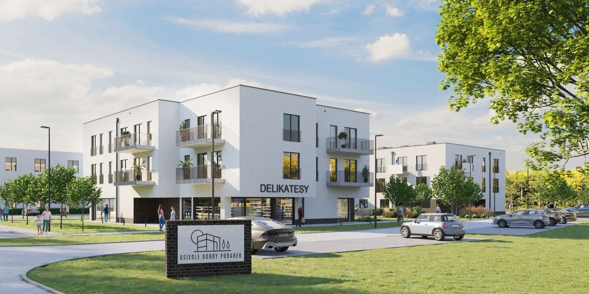 Osiedle Dobry Poranek to nie tylko wielorodzinne budynki mieszkalno-usługowe. W ich otoczeniu znajduje się kompleksowa infrastruktura osiedlowa – ze ścieżkami spacerowymi, drogami dojazdowymi i parkingami oraz z placem zabaw i świetlicą miejską. Całość uzupełniają tereny zielone.