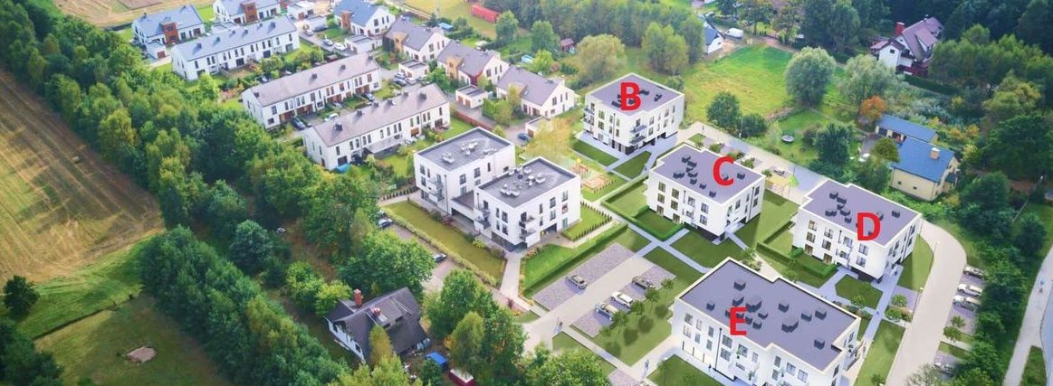 W budynku E oferujemy: 4 mieszkania trzypokojowe o powierzchni ok 68m2, 4 mieszkania dwupokojowe o powierzchni ok 60m2 oraz 4 mieszkania jednopokojowe o powierzchni ok 45m2.