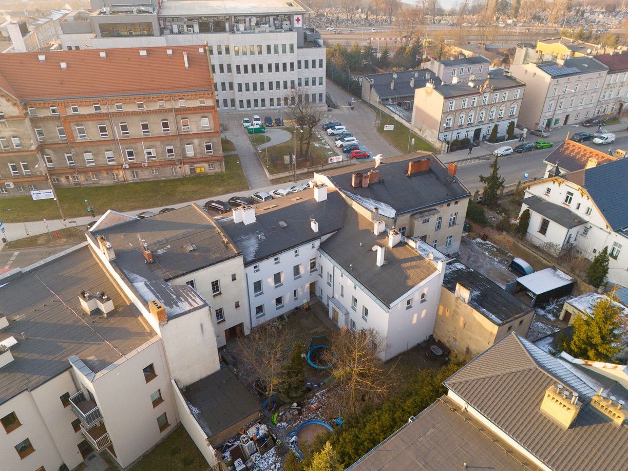 Kamienica posadowiona jest na działce o powierzchni 472 m², z bezpośrednim dostępem do drogi publicznej o nawierzchni asfaltowej. Naprzeciwko nieruchomości znajduje się szpital miejski, a w najbliższym otoczeniu dostępne są sklepy, apteki, szkoły, przedszkola, restauracje oraz wszystkie niezbędne udogodnienia miejskie. W sąsiedztwie znajdują się również ogólnodostępne miejsca parkingowe. Teren działki został zagospodarowany, z urządzoną zielenią oraz miejscem przeznaczonym do wypoczynku.