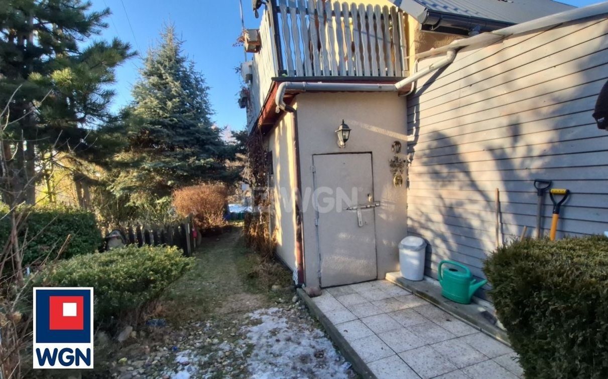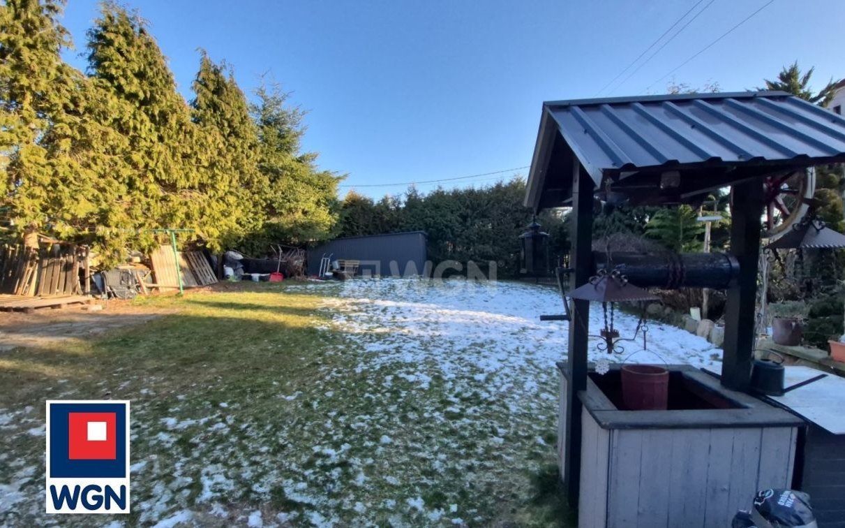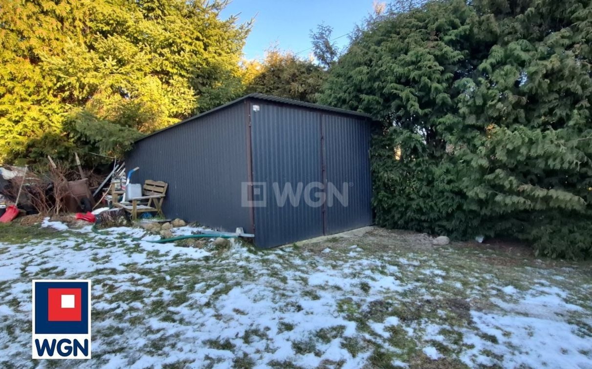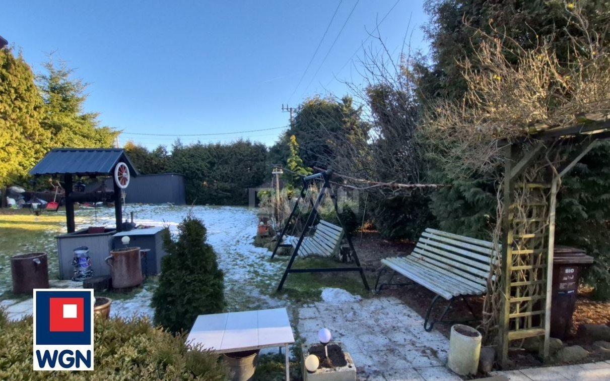 Przed domem znajduje się zadaszony taras a dalej na posesji garaż wolnostojący. W ogrodzie występują liczne nasadzenia.