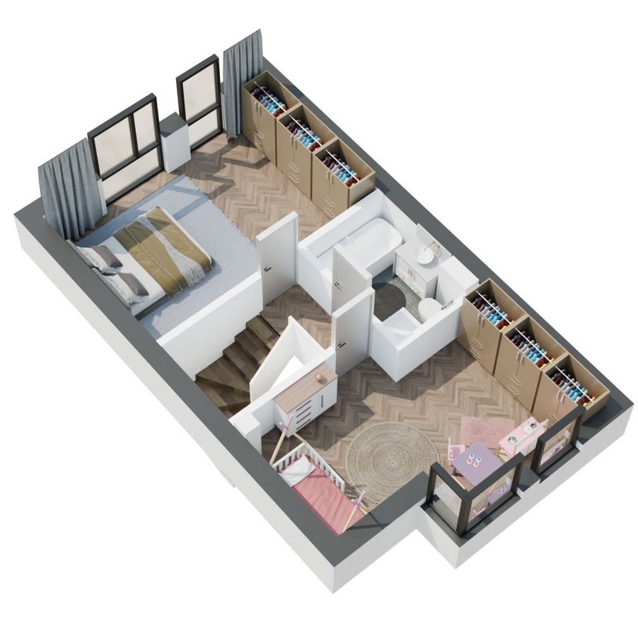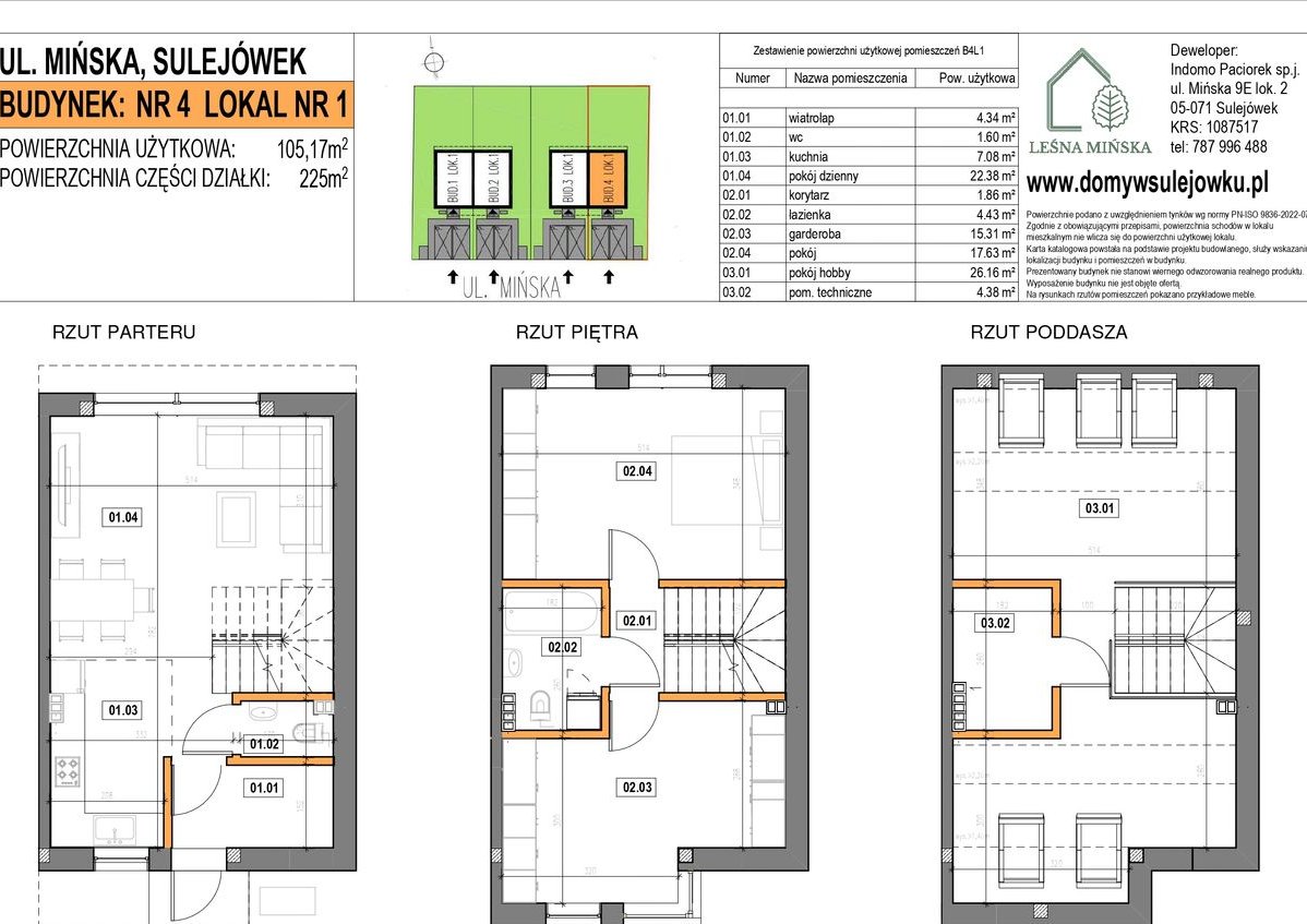 Każdy dom w inwestycji Leśna Mińska jest trzypoziomowy ( parter, piętro i poddasze użytkowe -mieszkalne). Łącznie można wydzielić aż 5 pokoi.