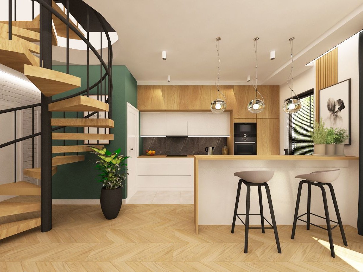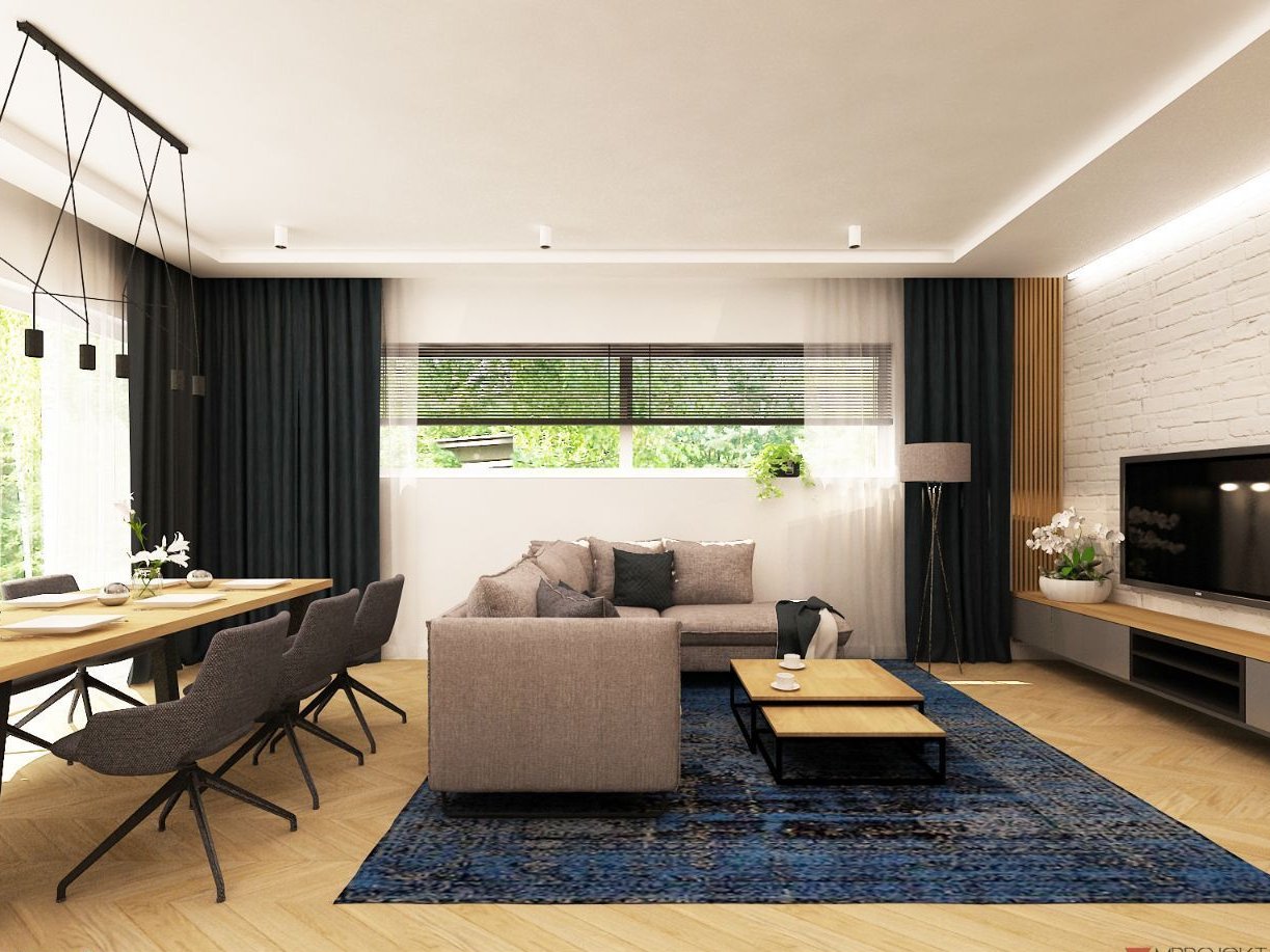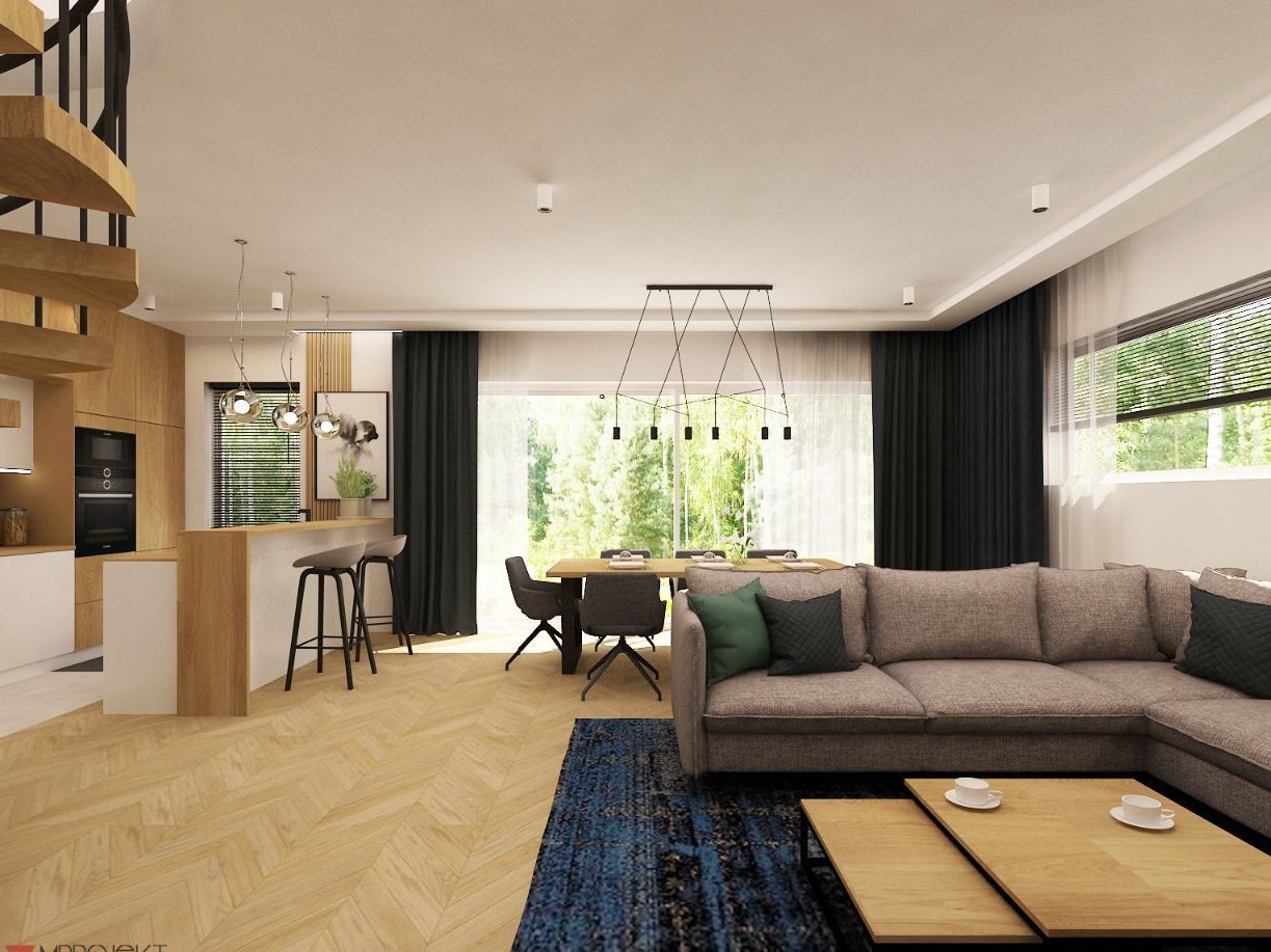 Na parterze domu znajduje się przestronny salon z jadalnią i aneksem kuchennym o powierzchni 46,5m2.+1.88m2.