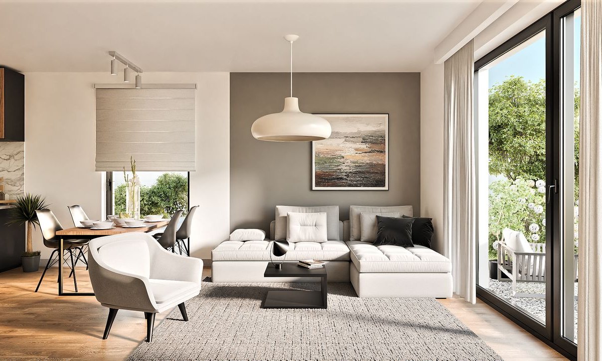 Nowoczesny, 4-pokojowy dom (101,9 m² pow. użytkowej, 123 m² całkowitej) z prywatnym ogrodem 120-140m2 i dwoma miejscami postojowymi.