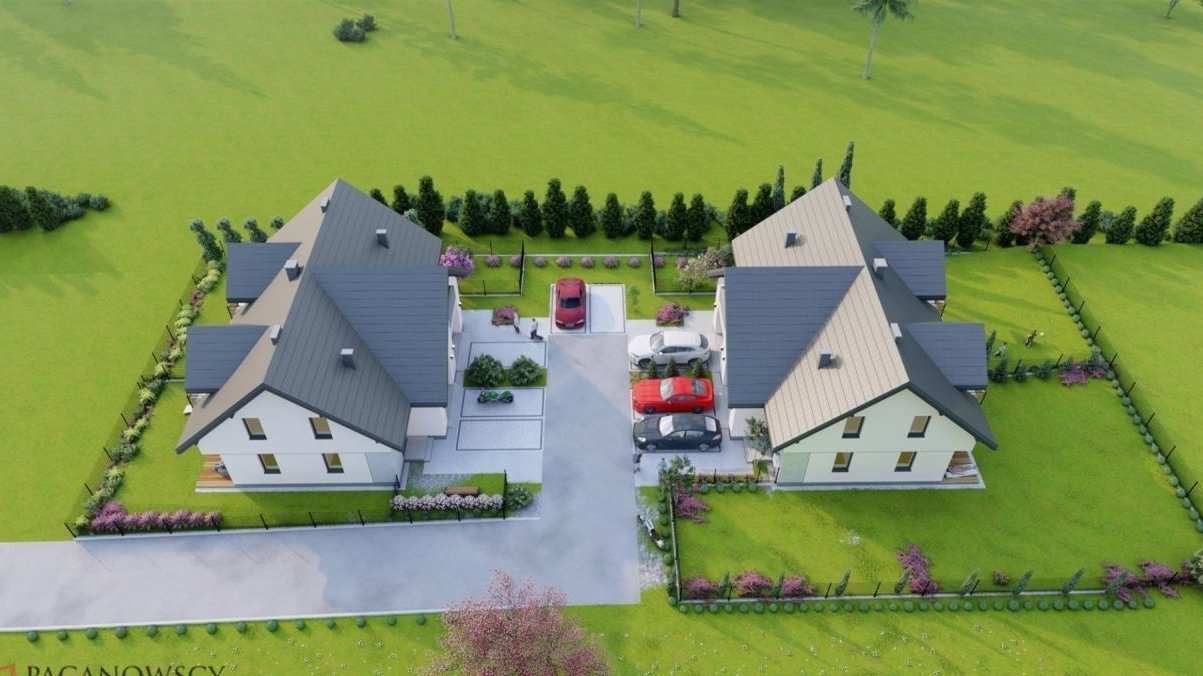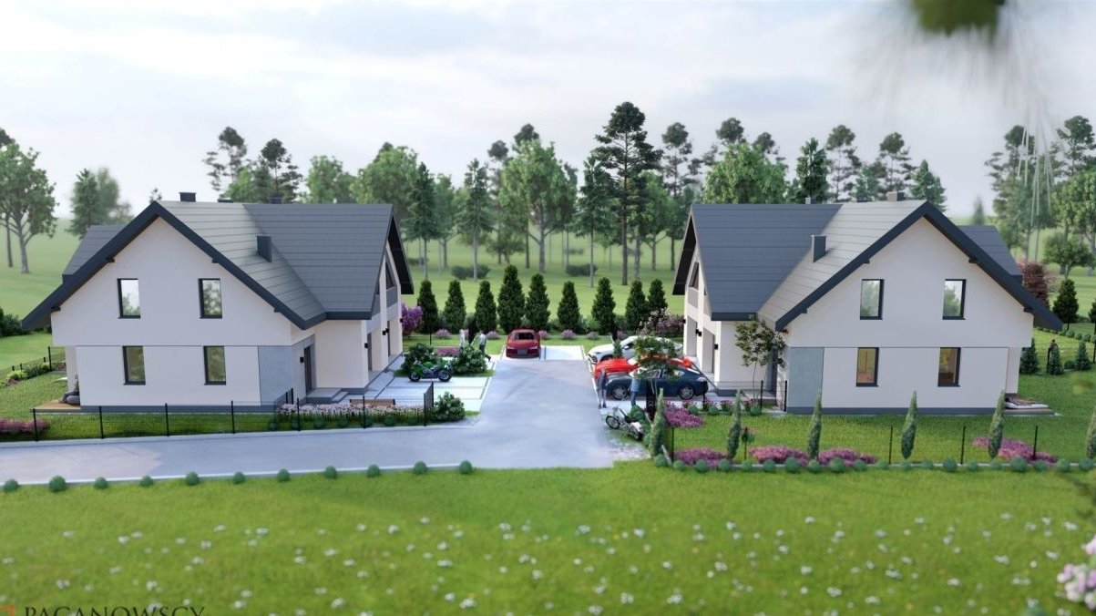 Dom z przynależnymi: balkonem, garażem ulokowanym w bryle budynku oraz dwoma miejscami postojowymi, wpisujący się w najnowsze trendy budownictwa. Dojazd drogą powiatową, następnie drogą prywatną utwardzoną.
