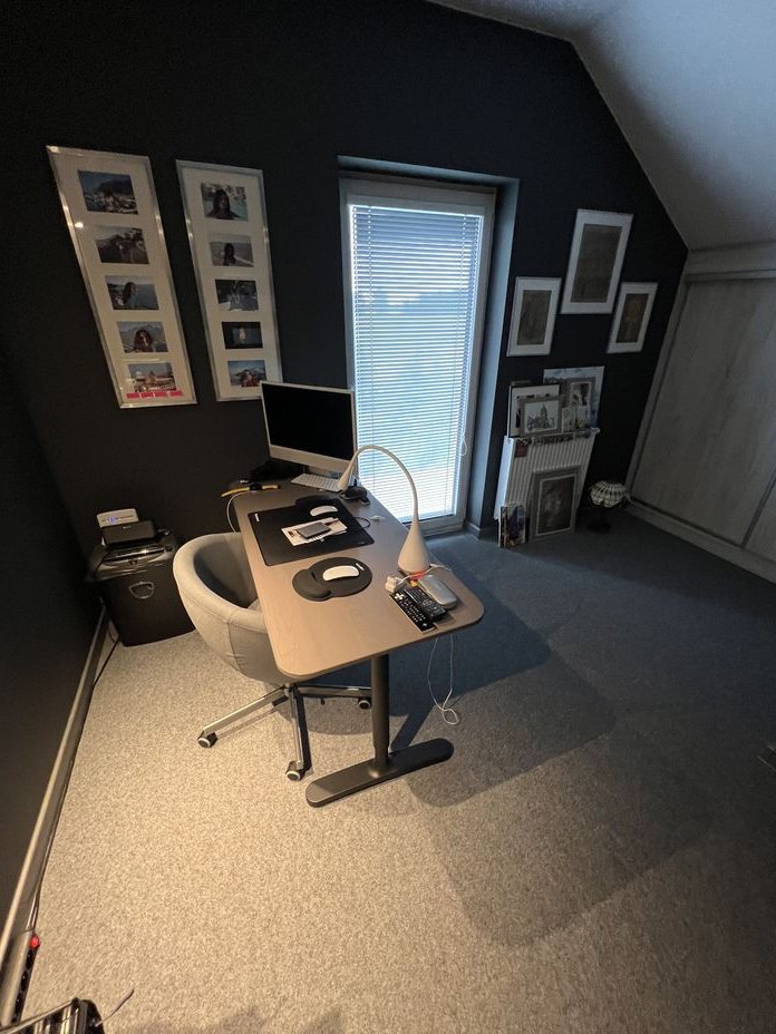 Piętro: sypialnia (osobna klimatyzacja) z garderobą i łazienką, dwie sypialnie ( jedna obecnie przeznaczona na gabinet) + łazienka,