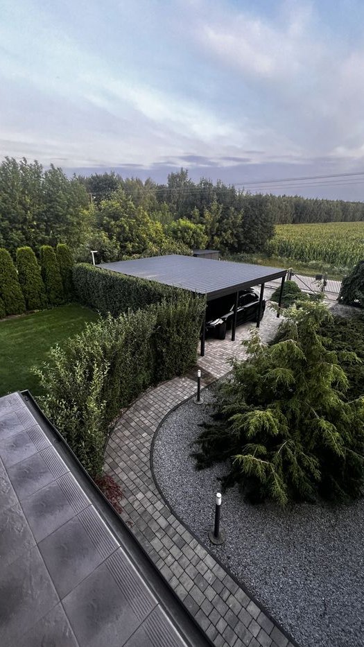 Budynek Parterowy z użytkowym poddaszem, posadowiony na wysokim fundamencie. Na działce o powierzchni 1000 m2 znajduje się wiata na 3 samochody, pomieszczenie gosp. komunalne, budynek gospodarczy, jak również przepiękny, kwitnący ogród ze strefą odpoczynku i relaksu (duża altana). Całość ogrodzona ogrodzeniem dającym pełne poczucie komfortu.
