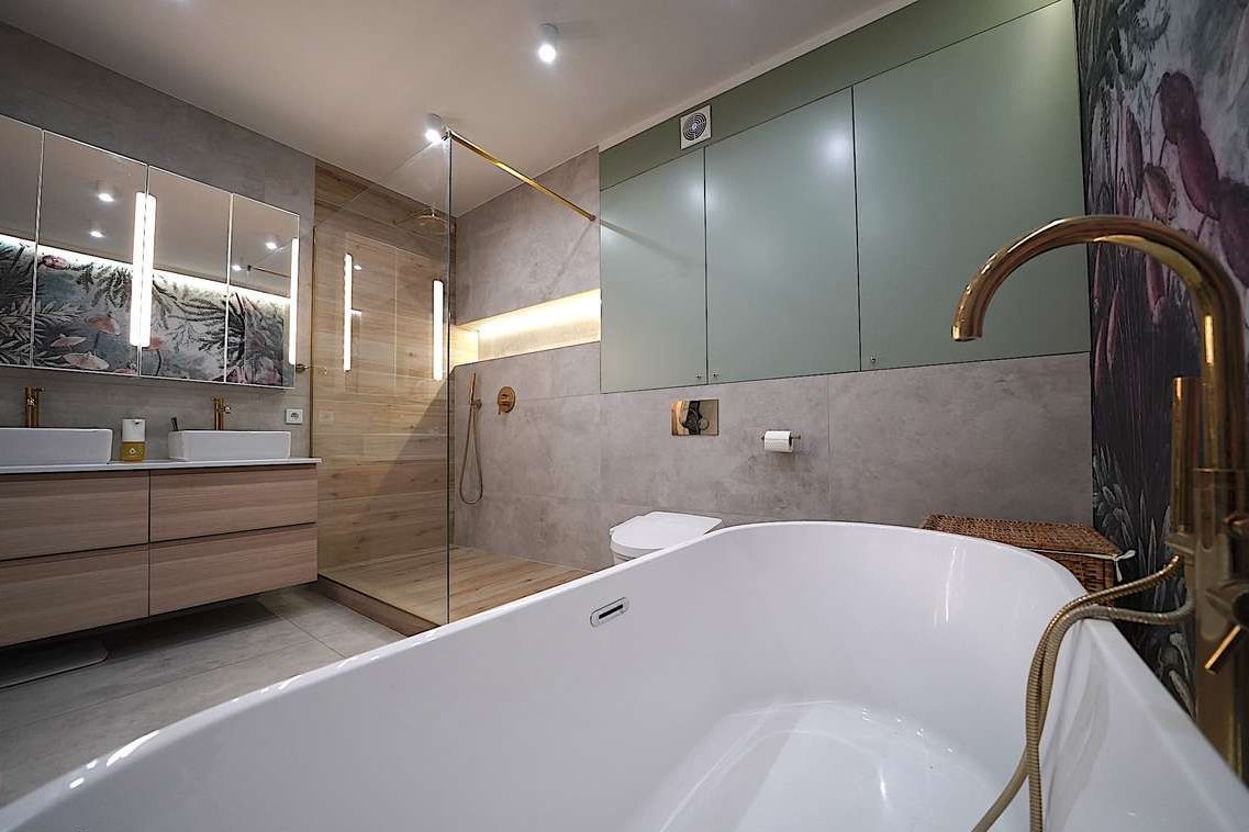 łazienka z prysznicem i wanną,