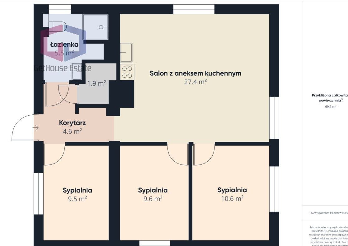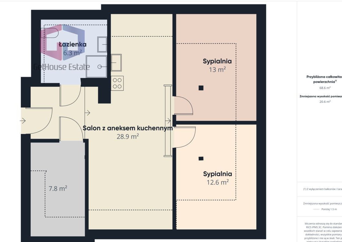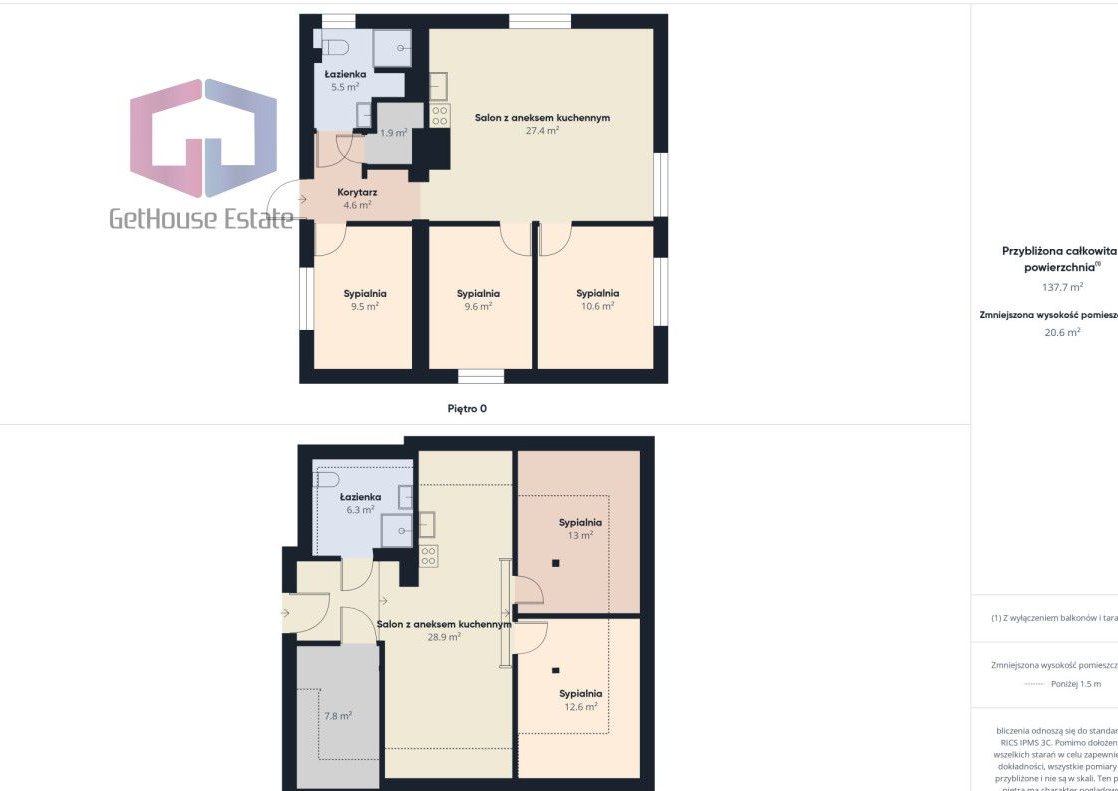 powierzchnia całkowita ok. 140 m², dwie kondygnacje