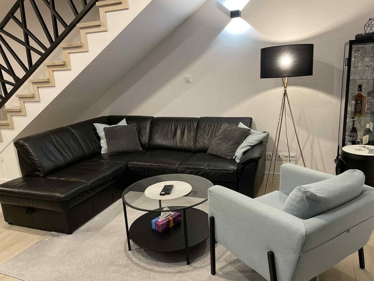 Kuchnia: W pełni umeblowana i wyposażona w sprzęt AGD (Beko). Nowoczesna wyspa z przyłączem elektrycznym, płyta indukcyjna oraz praktyczna spiżarnia z kotłem gazowym.