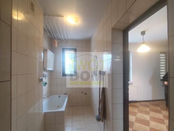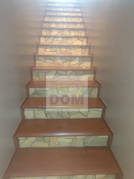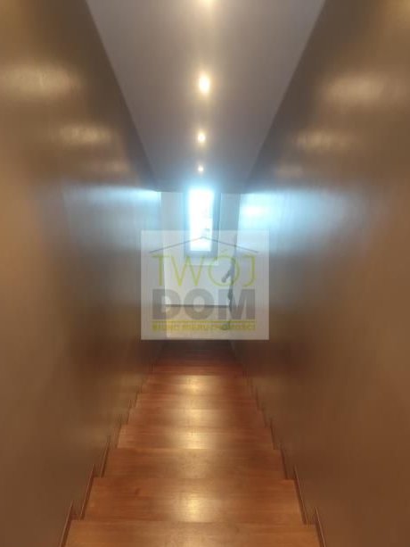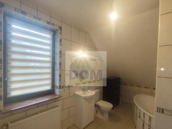 Na piętrze znajdują się korytarz, cztery pokoje, łazienka z wanną oraz pomieszczenie gospodarcze z którego jest wejście na strych.