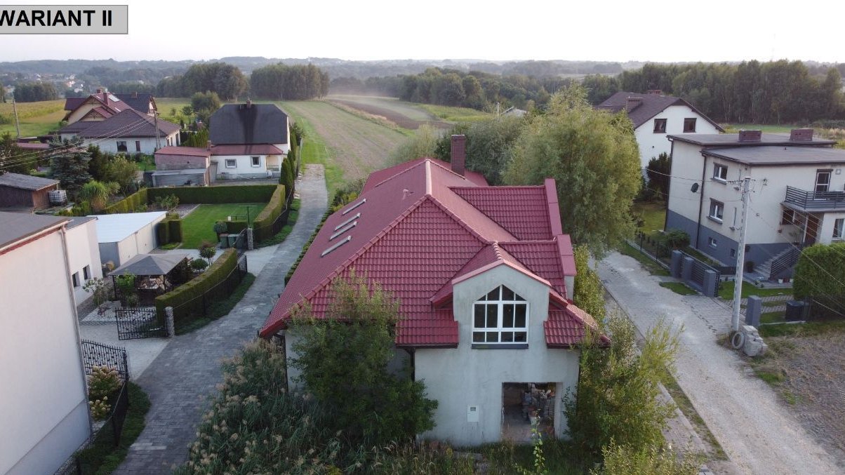 o konstrukcji krokwiowej, nad garażem wiązary drewniane deskowe. Konstrukcja dachowa drewniana, pokrycie dachu stanowi dachówka ceramiczna na łatach drewnianych. Nieruchomość położona jest w Radlinie, przy ulicy Głożyńskiej. Nieruchomość w stanie surowym zamkniętym, częściowo ocieplony i otynkowany, wyposażony w okna oraz parapety. W budynku poprowadzona instalacja grzewcza oraz elektryczna. – cena 500 000,00 zł