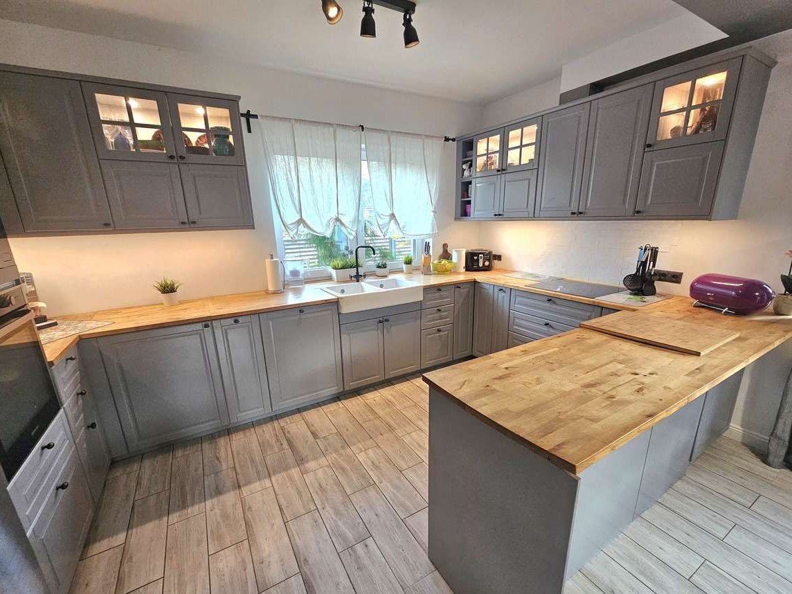 W pełni wyposażona: piekarnik i mikrofalówka w zabudowie, płyta indukcyjna, zmywarka 60 cm, lodówka wolnostojąca dopasowana stylistycznie do zabudowy