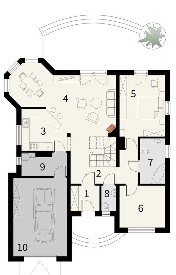 Wnętrza jasne i ciepłe, urządzone w klasycznym, ponadczasowym stylu. Duży salon z kominkiem, jadalnia, funkcjonalna kuchnia, 5 pokoi, 2 łazienki oraz garaż w bryle budynku.