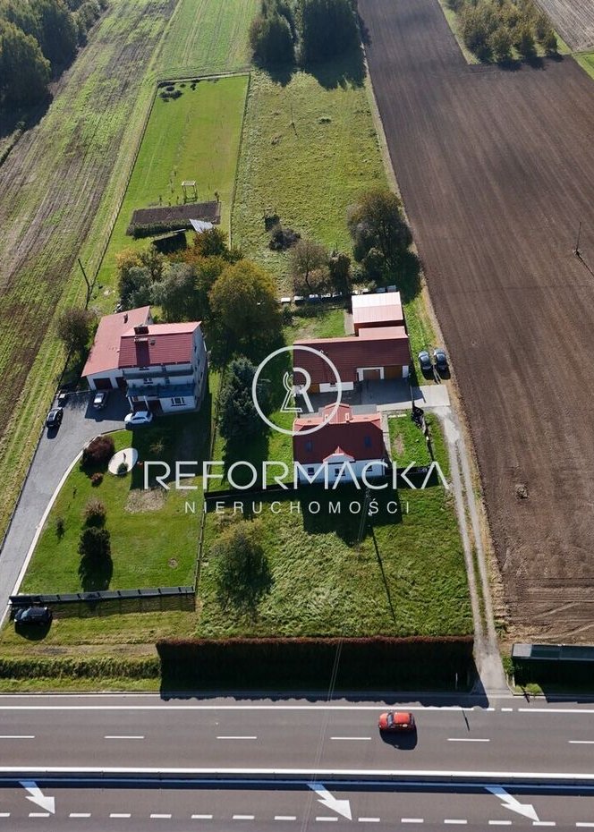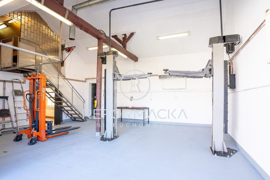 - Budynek gospodarczy/warsztat o powierzchni użytkowej ok. 150 m². Obiekt pełni funkcję biura z pomieszczeniami magazynowymi oraz sanitarnymi. warsztatu samochodowego, wyposażonego w hydrauliczny podnośnik oraz kanał serwisowy, co czyni go idealnym miejscem dla majsterkowiczów lub osób prowadzących działalność.
