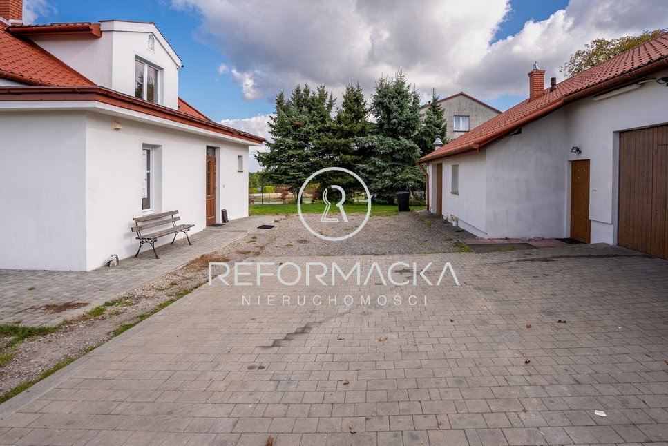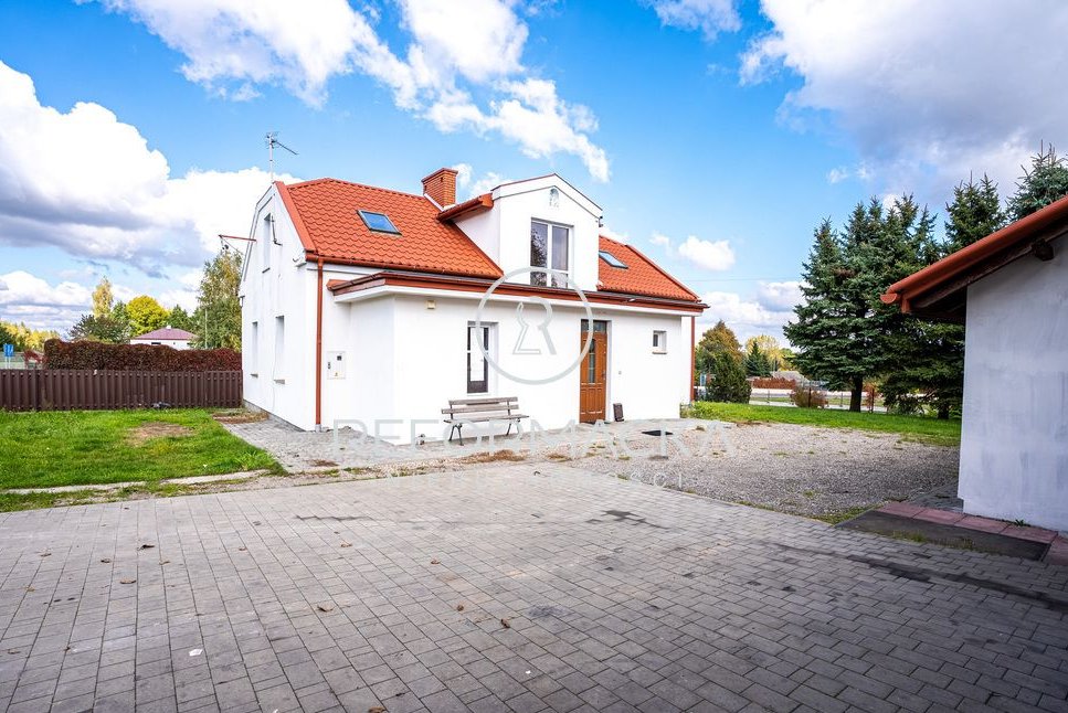 Dom murowany z poddaszem użytkowym i piwnicą, kryty blacho-dachówką o powierzchni ok. 170 m². Na działce znajduje się również budynek gospodarczy/warsztat o powierzchni ok 150m2.