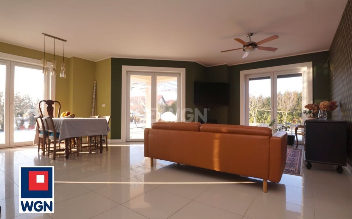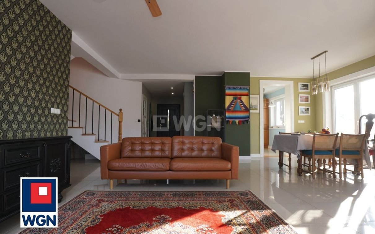 Głównym punktem domu jest reprezentacyjny salon z wyjściem na duży taras (36 m2) i ogród. Otwarty na jadalnię i kuchnię tworzą doskonałą przestrzeń do spędzania czasu w rodzinnym gronie.