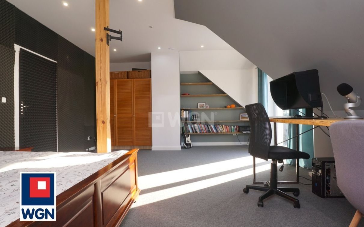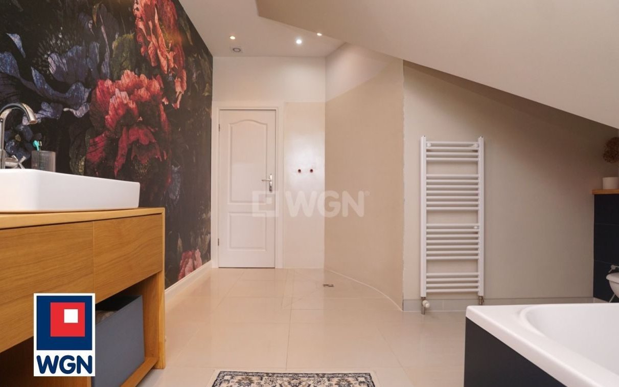 Na poddaszu znajdują się 3 sypialnie, garderoba oraz ogólnodostępna, przestronna łazienka/salon kąpielowy (wanna RIHO 400l i osobny prysznic, toaleta z bidetka).