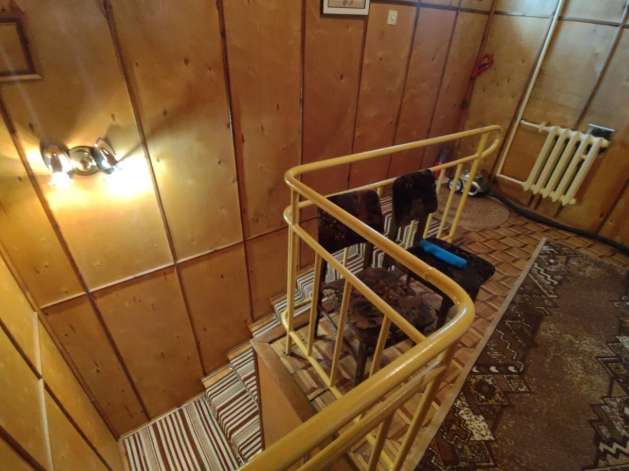 Piętro: 3 pokoje, balkon, hol, klatka schodowa. Możliwość adaptacji kuchni i łazienki.