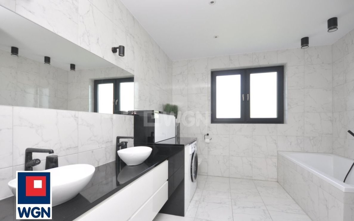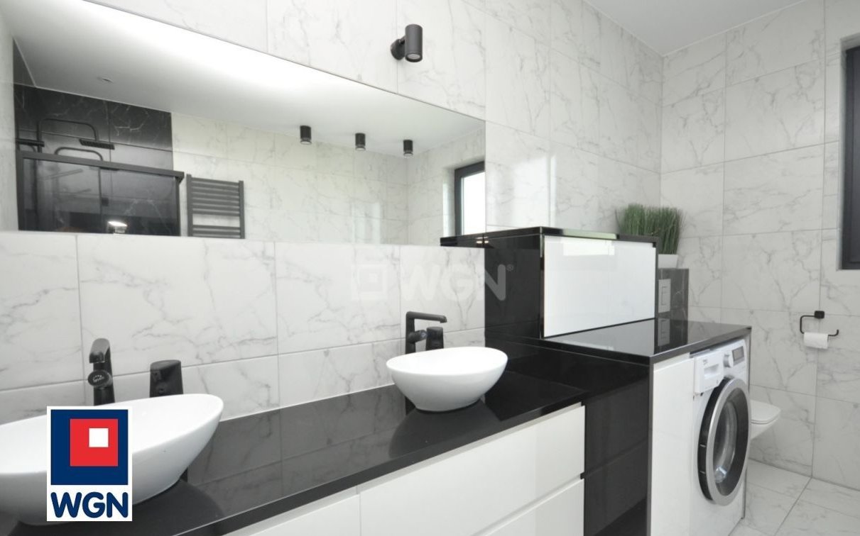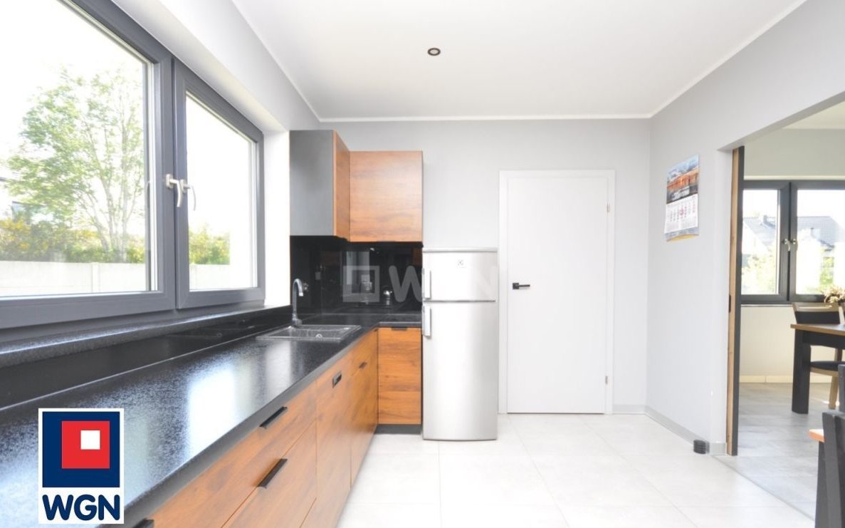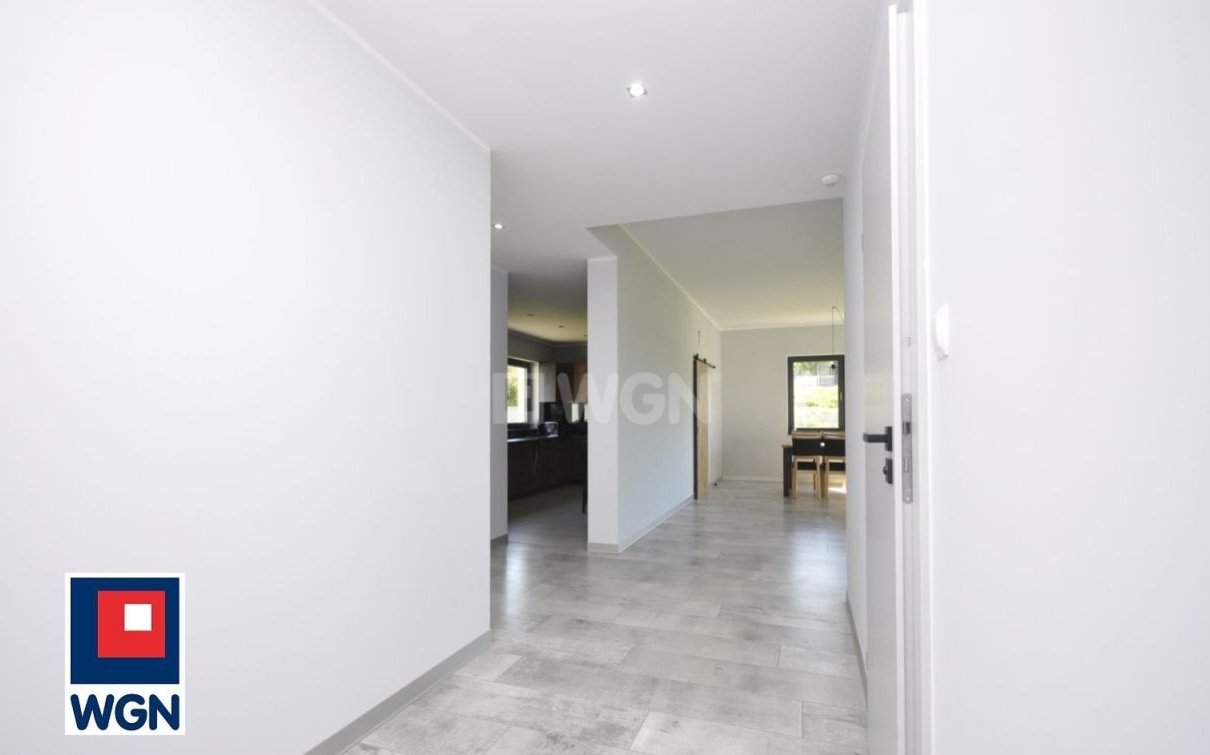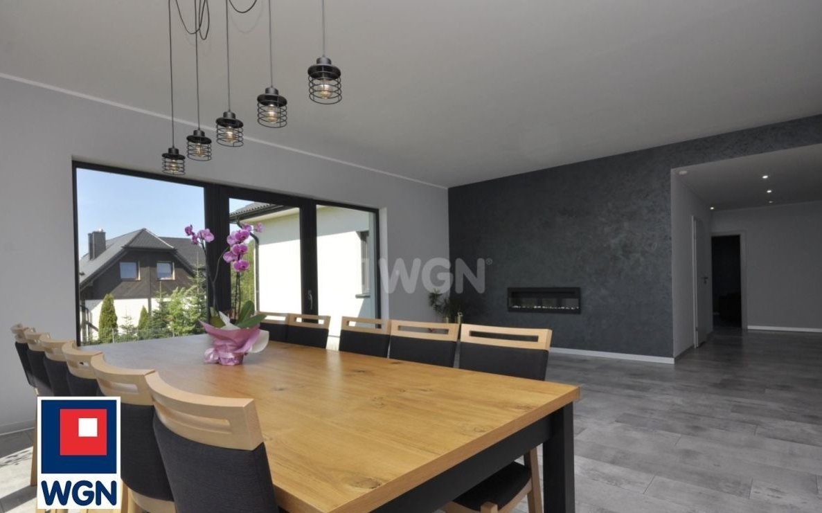 Dom o powierzchni użytkowej ok 205 m2, składa się z 5 przestronnych pokoi, w tym salonu z jadalnią, oraz oddzielnej dużej kuchni wyposażonej w wysokiej jakości sprzęt AGD. Na uwagę zasługują również 2 elegancko urządzone łazienki, z których jedna pełni funkcję salonu kąpielowego, wyposażonego w wannę oraz kabinę typu walk-in. Całość domu urządzona została w nowoczesnym stylu, co nadaje nieruchomości elegancki i przytulny charakter. Dodatkowym atutem jest dwustanowiskowy garaż, co czyni tę nieruchomość atrakcyjną opcją na rynku.