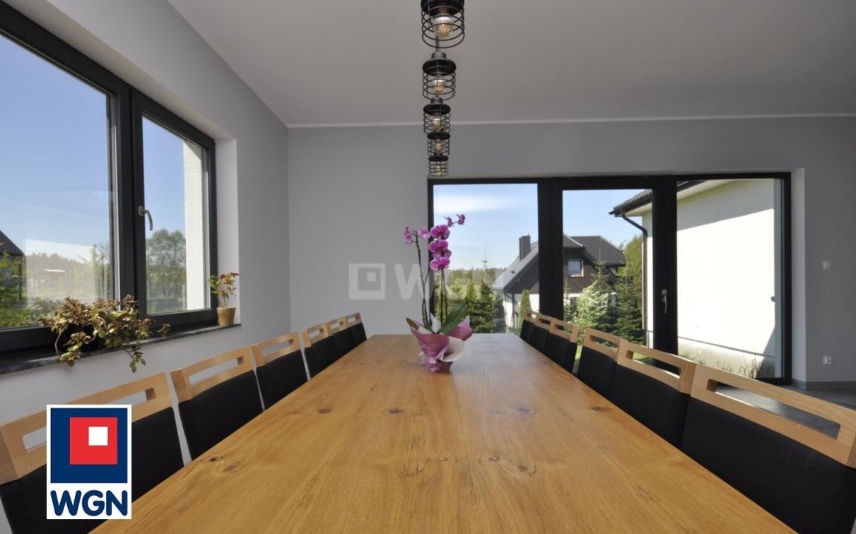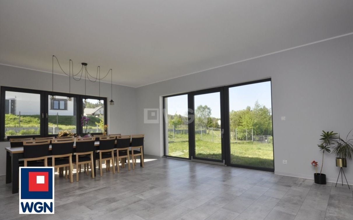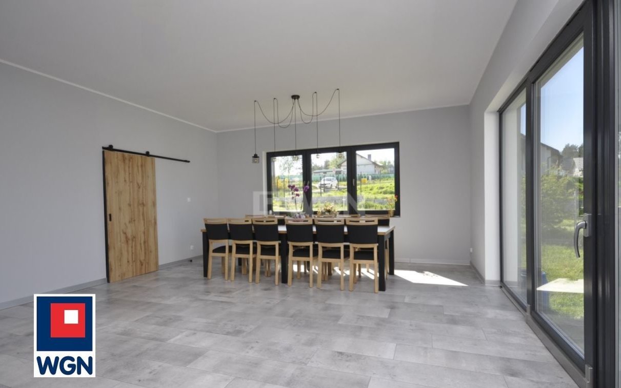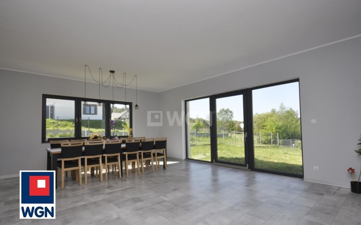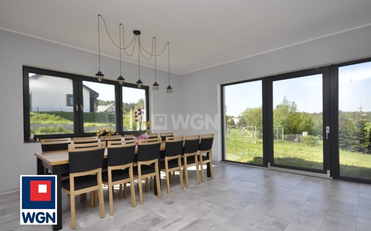 Dom o powierzchni użytkowej ok 205 m2, składa się z 5 przestronnych pokoi, w tym salonu z jadalnią, oraz oddzielnej dużej kuchni wyposażonej w wysokiej jakości sprzęt AGD. Na uwagę zasługują również 2 elegancko urządzone łazienki, z których jedna pełni funkcję salonu kąpielowego, wyposażonego w wannę oraz kabinę typu walk-in. Całość domu urządzona została w nowoczesnym stylu, co nadaje nieruchomości elegancki i przytulny charakter. Dodatkowym atutem jest dwustanowiskowy garaż, co czyni tę nieruchomość atrakcyjną opcją na rynku.