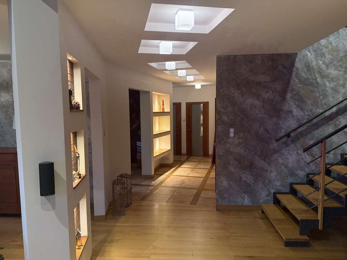 Wnętrza są harmonijne, zadbane i bardzo dobrze zaplanowane — zapewniają wygodę codziennego życia oraz reprezentacyjny charakter domu.