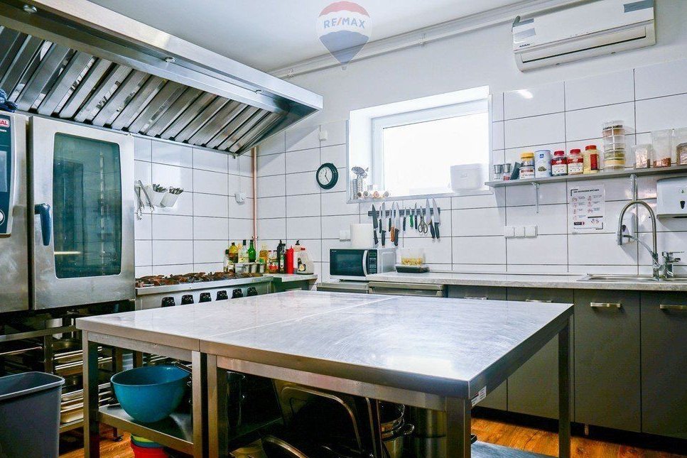 Na parterze domu znajduje się lokal usługowy o powierzchni ok. 150m2. Przestrzeń obejmuje kompletnie wyposażoną salę bankietową oraz klimatyzowane zaplecze kuchenne. Dodatkowym atutem jest gródek ok 60m2. Lokal użytkowany jest obecnie pod działalność cateringową.
