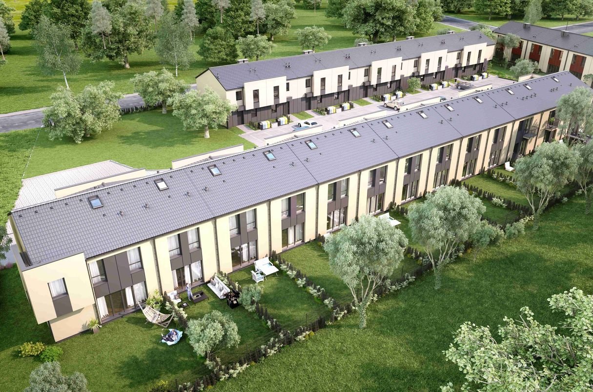 Inwestycja składa się z dwukondygnacyjnych domów w zabudowie szeregowej o powierzchni od 80 do 122 m2 oraz mieszkań o powierzchni od 45 do 50 m2.