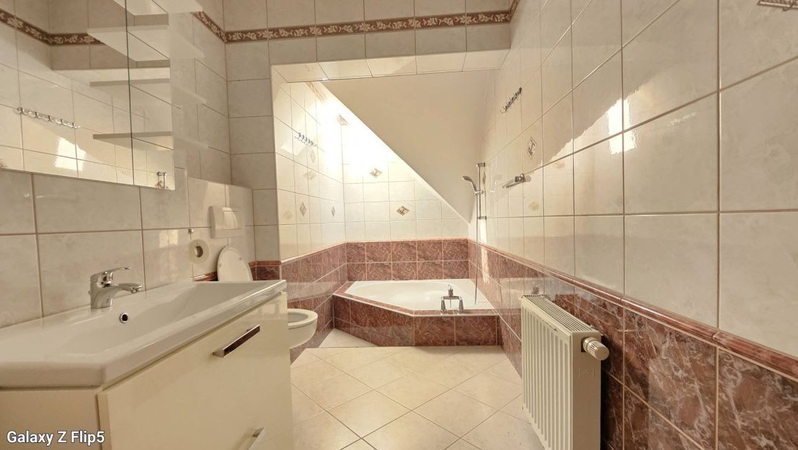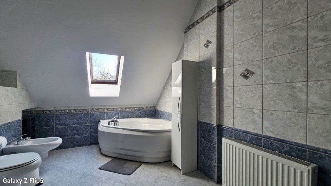 - masterbedroom z dużą łazienką z wanną i oknem oraz garderobą