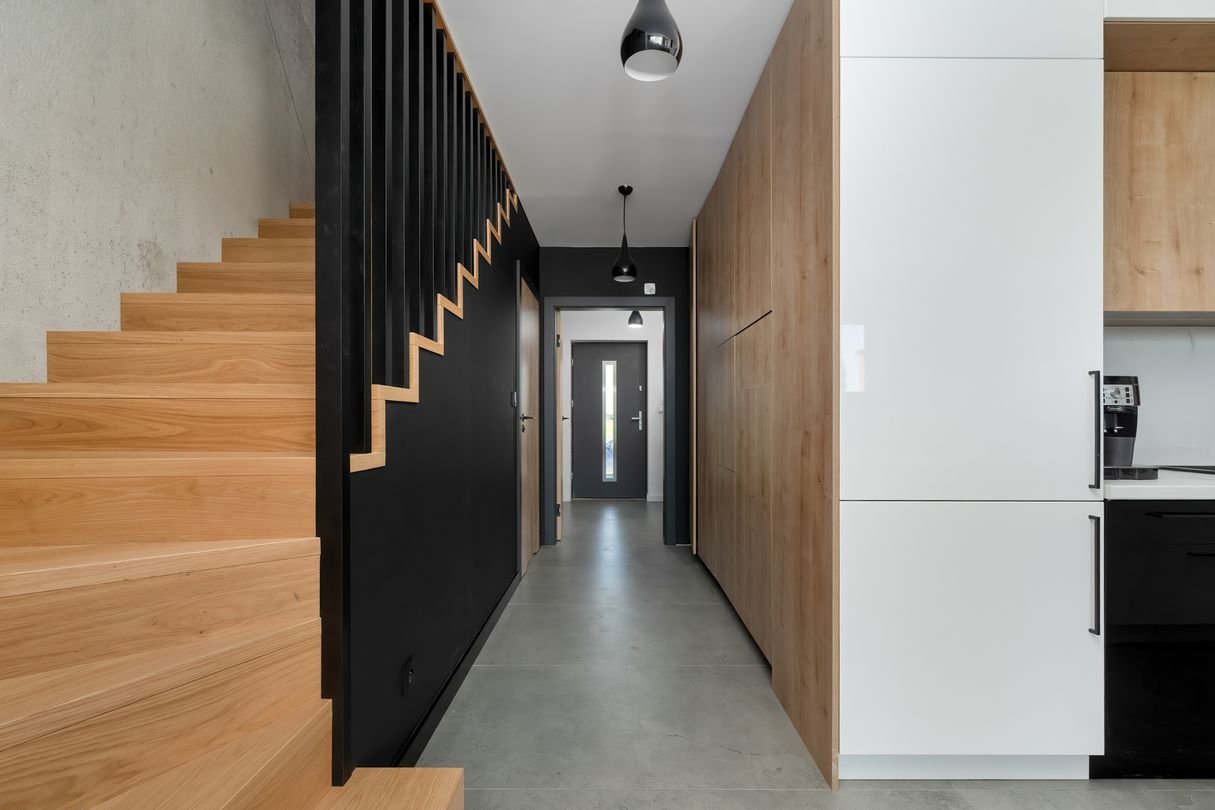 Drewniane, dębowe schody nadające wnętrzu ciepła i charakteru