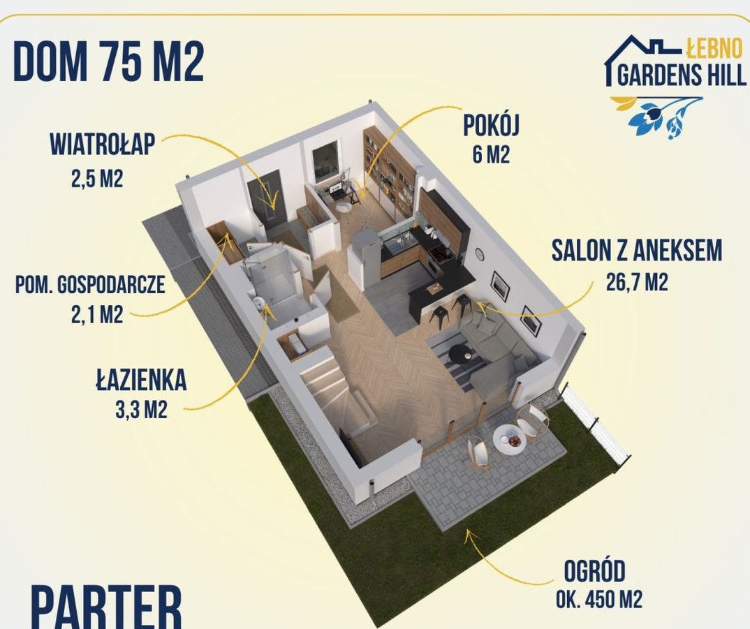 Zbuduj swoją przyszłość już dziś w kameralnej inwestycji Gardens Hill! Oferujemy nowoczesne domy dwulokalowe (bliźniaki) o powierzchni 75 m² z własnym, dużym ogrodem oraz dwoma prywatnymi miejscami postojowymi.